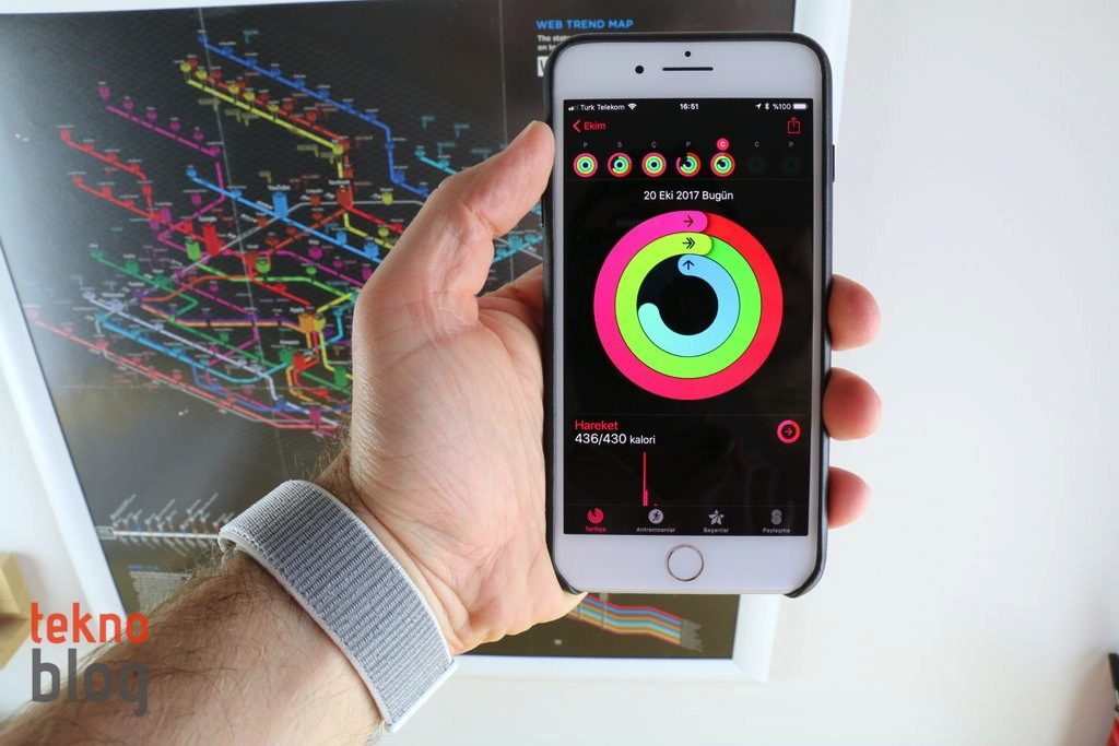 Kalp hızı ölçümlerini iPhone’daki Sağlık uygulamasında da görebilirsiniz. Bunun yanı sıra watchOS 4 ile birlikte, Apple Watch egzersiz aletlerine de bağlanabiliyor. Gittiğim spor salonundaki aletler eski olduğu için, bu yeniliği test etme fırsatı bulamadım. NFC yardımıyla kablosuz eşleştirme yapan ve veri aktarımı gerçekleştiren bu özelliğin epey kullanışlı göründüğünü belirtmem gerekiyor.