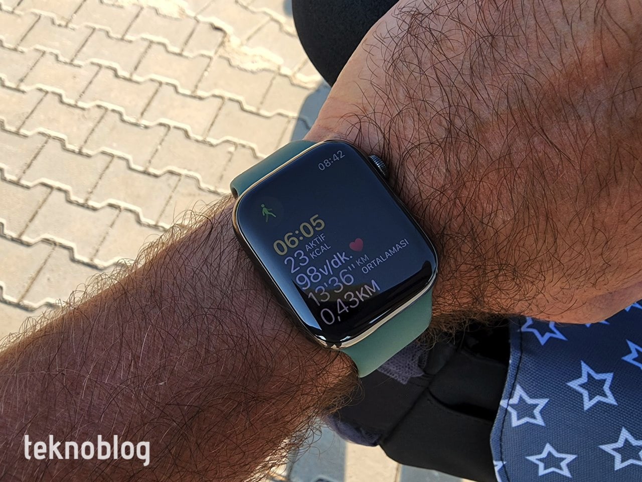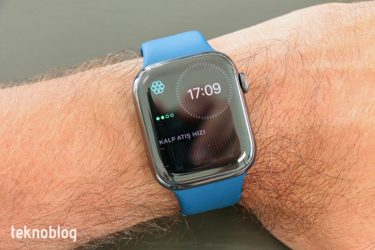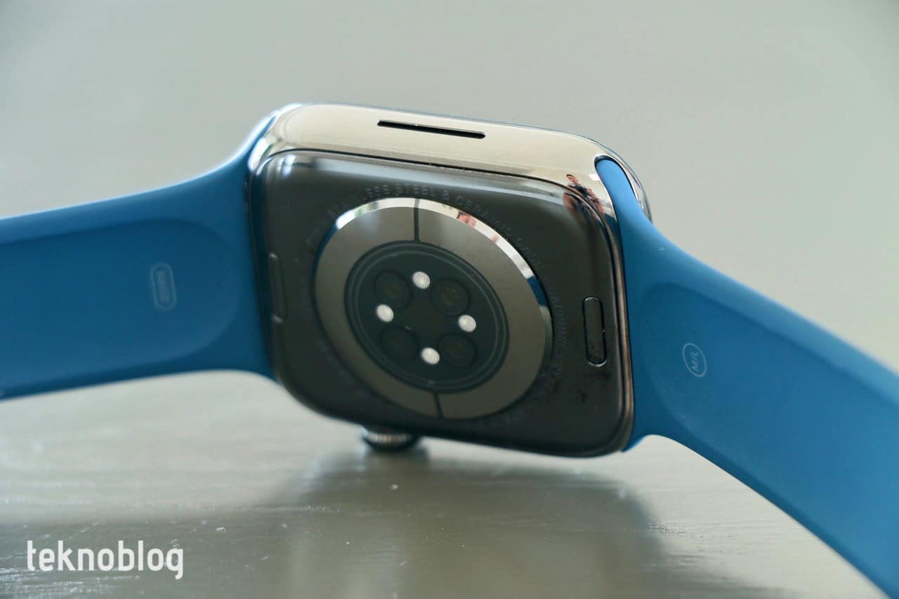 Apple Watch Series 7’nin GPS + Cellular versiyonlarında, GPS versiyonlarında gördüğümüz alüminyum kasanın yanında paslanmaz çelik kasa seçeneği de mevcut. Bu seçenekte ise gümüş, altın ve grafit olmak üzere üç farklı renk mevcut. Benim elimde 45mm, grafit renkli versiyon var ve ona mavi renkli spor kordon eşlik ediyor. Ancak Apple Watch Series 7’yi çoğunlukla okaliptus renkli Solo Loop kordon ile kullandığımı belirtmeliyim. Mevsim yaz ve sıklıkla denize giriyorum. Kauçuktan yapılmış bu kordon üstünde sıvıyı fazla tutmadığı ve hızlı şekilde kuruduğu için genellikle tercih ettiğim seçenek oldu. Bununla birlikte örgü solo loop ve önceki Apple Watch’lardan kalma kayışları da rahatlıkla kullanmak mümkün oluyor.