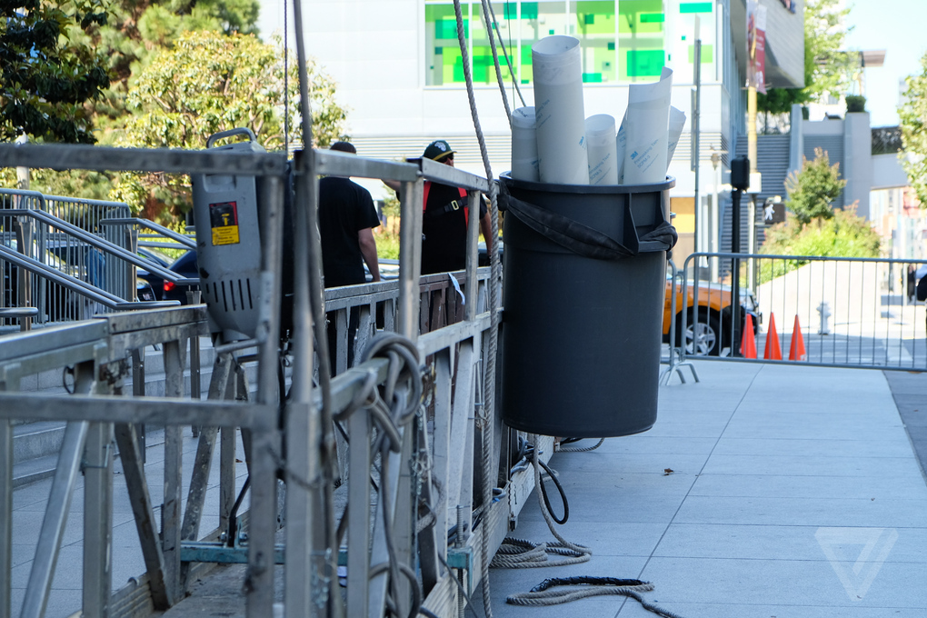 Büyük Apple logoları üç katlı binanın her iki tarafına yerleştirilerken içeriye de şirketin ürünlerinin tabelaları asıldı. Bir tane tabelanın üstünde büyük bir 8 rakamı bulunuyor, bu da iOS 8’in beklendiği gibi tanıtılacağı anlamına geliyor.