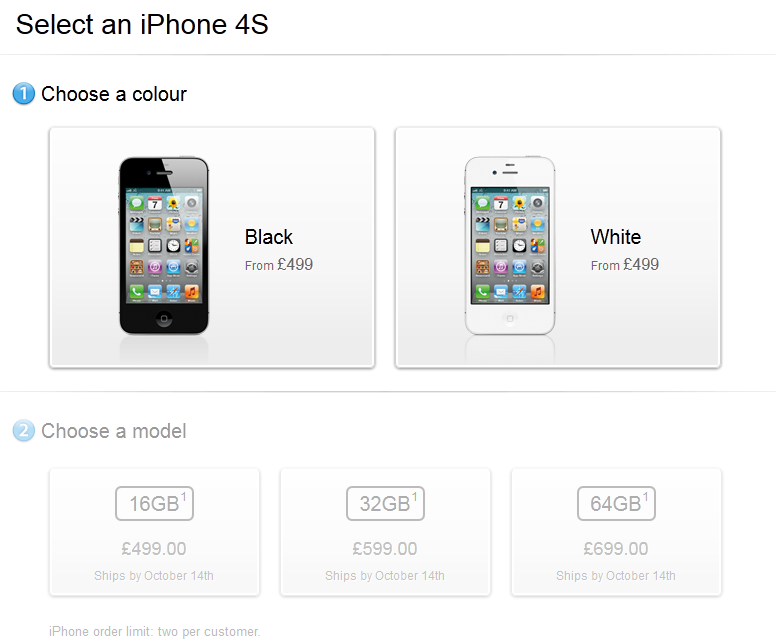 iPhone 4S’in 16, 32 ve 64 GB’lık versiyonları için ABD’de sırasıyla 199$, 299$ ve 399$’lık ön ödeme alınıyor. Tabii bununla birlikte ürünü satın aldıkları mobil operatörden seçecekleri uygun tarife karşılığında ödeyecekleri aylık ücretler de söz konusu. iPhone 4S’i sözleşmeyle uğraşmadan, peşin parayla satın almak isteyenlerin ise kasım ayını beklemeleri gerekecek. SIM kilidi olmayacak bu iPhone 4S’ler sırasıyla 649$, 749$ ve 849$’lık fiyatlardan satılacak. iPhone 4S İngiltere’de de ön siparişe çıktı ve görünen o ki bu cihazın SIM kilitsiz versiyonuna sahip olmak isteyenler fazla beklemeyecek. Cihazın İngiltere satış fiyatları sırasıyla 449, 599 ve 699 pound olarak belirlenmiş. İngiltere’de bir müşteriye iki iPhone 4S satıldığı şeklinde not düşüldüğünü de hatırlatalım.