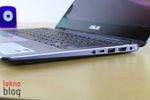Bağlantı seçenekleri bakımından da Asus, VivoBook Flip 14’ten hiçbir esirgemede bulunmamış. Sağ kenarda güç girişi, HDMI çıkışı, USB-A portu, USB-C portu ve 3.5 mm. kulaklık jakı bulunuyor. Solda ise iki adet USB-A portu daha görüyoruz. Bunların yanında SD kart yuvası bulunurken, daha da ilerlediğimizde gösterge lambaları, ses ve güç düğmelerini görüyoruz. Güç düğmesi, bir dizüstü bilgisayarda alıştığımız yerin dışında bir yere konumlandırılmış. Ancak Flip 14’ün bir tablet olarak da kullanıldığını göz önünde bulundurursak, bu yer seçiminin çok da yanlış olmadığını söyleyebiliriz.