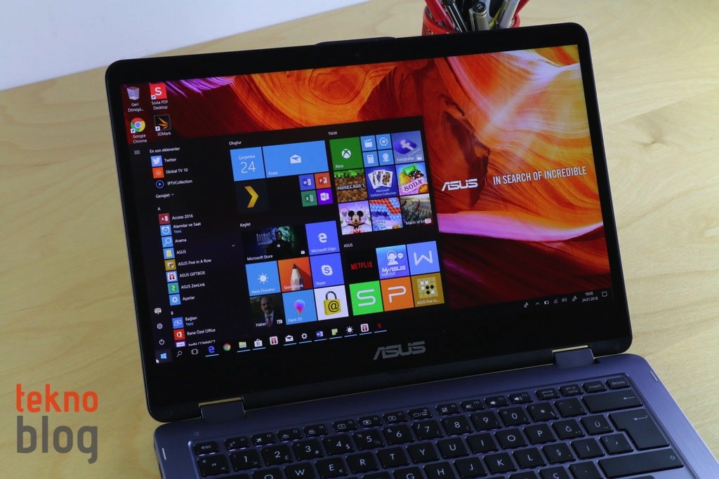 Asus’un web sitesinde VivoBook Flip 14’ün sahip olduğu pilin 10 saate kadar çalışma ömrü sunduğu belirtiliyor. Ancak ekran parlaklığının yüzde 60 seviyelerinde tutulduğu bir durumda, bu bilgisayar 5 ila 6 saat arasında internette gezinme, Teknoblog’a yazı yazma, fotoğraf düzenleme gibi işleri gerçekleştirmek mümkün oluyor. Asus’un bahsettiği süreye çıkmak ise ancak ekran parlaklığını iyice kısmak, kablosuz bağlantıları kapatmak gibi bir durumda geçerli olacaktır.
