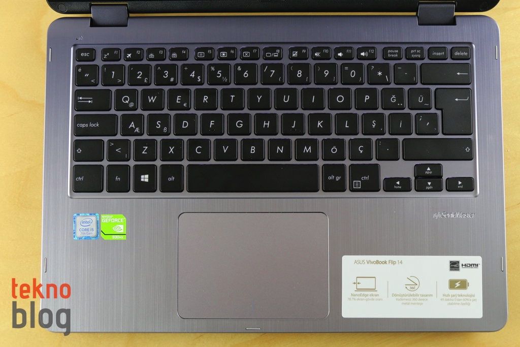 VivoBook Flip 14’ün ada tipi klavyesi bulunuyor. Tuşlar çok büyük değil, ancak çoğu kullanıcının parmak uçlarının rahatlıkla temas edip kullanacağı genişliği sunuyor. Tuş aralıkları da rahat yazmaya katkıda bulunuyor. Ayrıca tuşlar ne çok yumuşak, ne de çok sert. Derinlik de optimum seviyede ayarlanmış. Normalde Apple’ın MacBook Pro’larının klavyesine alışmış biri olarak, VivoBook Flip 14’te yazı yazmakta hiç zorlanmadığımızı belirtmemiz gerekiyor. Bu arada tuşların arkadan aydınlatmalı olduğunu da eklemeden geçmeyelim. Üç farklı parlaklık seviyesi bulunuyor. En düşük parlaklık seviyesi bile tuşları ayırt etmek için yeterli oluyor.