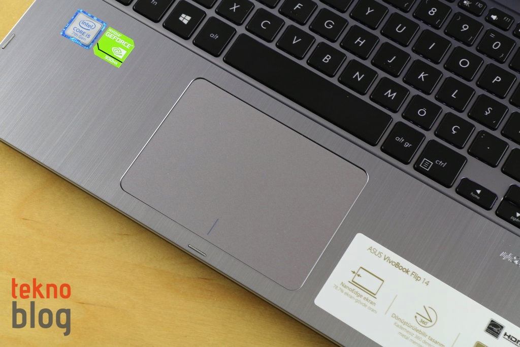 Benzer durum izleme dörtgeni için de geçerli. Klavyenin hemen altında, biraz ortanın soluna doğru konumlandırılmış izleme dörtgeni bulunuyor. İzleme dörtgeninin yüzeyi sert değil, parmağınızı rahatlıkla kaydırabilirsiniz. Ayrıca tepkisellik de iyi seviyede, imleci sizin parmak hareketlerinize rahatlıkla ayak uyduruyor. Normalde Windows bilgisayarlarda fare kullanma ihtiyacı doğar, ancak Asus VivoBook Flip 14’te neredeyse hiçbir zaman böyle bir ihtiyacı hissetmedik.