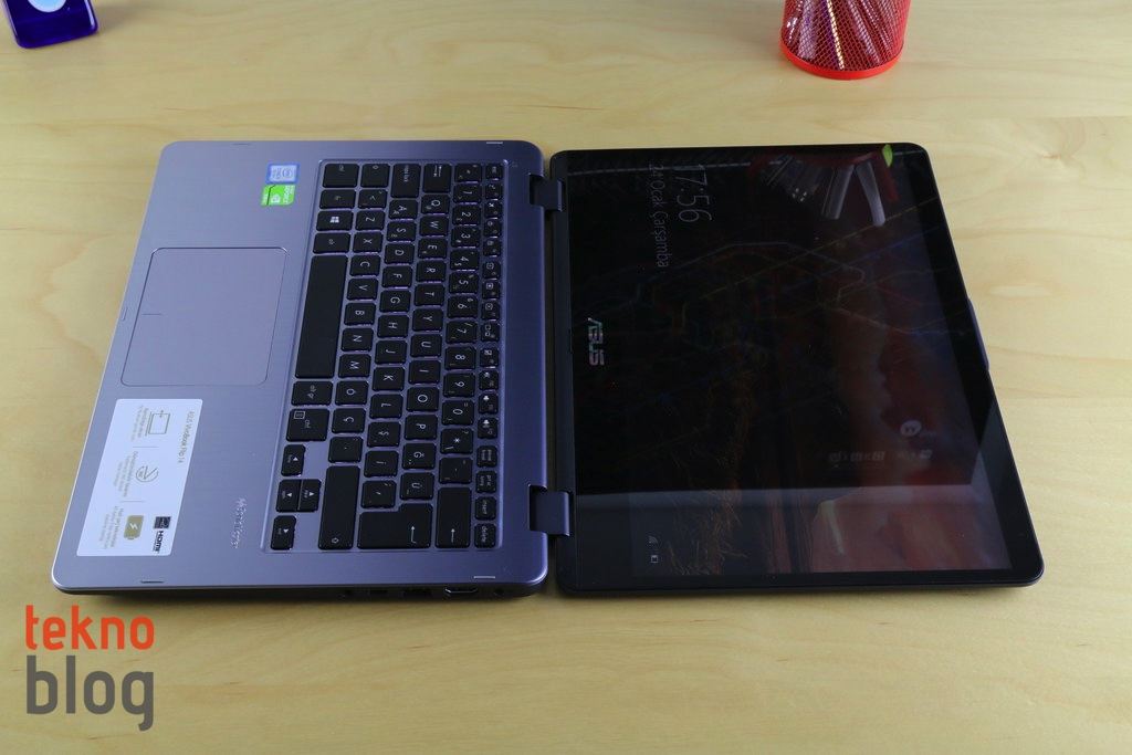 Asus’un bu bilgisayarı sahip olduğu 360 derece döndürülebilir menteşe yapısı sayesinde farklı biçimlerde kullanılabiliyor. Standart bir dizüstü bilgisayar gibi kullanmanın yanı sıra; klavye yüzeye temas edecek biçime getirerek ya da çadır biçimine sokarak rahatlıkla film veya YouTube videoları izleyebilir ya da Skype görüşmelerini yapabilirsiniz. Bunun yanı sıra, ekranı 360 derece döndürerek Flip 14’ü bir tablete çevirebilir, böylelikle sadece dokunmatik ekranla işlerinizi görebilirsiniz.