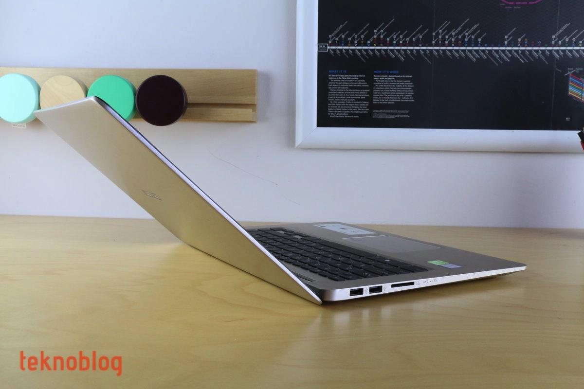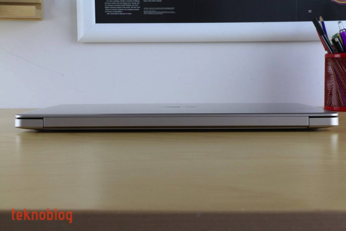 Kasanın menteşeden ön tarafa doğru geldikçe sivrileşmesi ise akıllara, biraz daha büyük ölçtekte de olsa, MacBook Air’i getiriyor. Tartıda 1,5 kilogram çeken VivoBook S510U, boyutları çerçevesinde değerlendirildiğinde hafif bir cihaz hissiyatı yaratıyor. Dizüstü bilgisayar tek elle tutulduğu sırada herhangi bir sıkınıtı hissi oluşturmuyor.