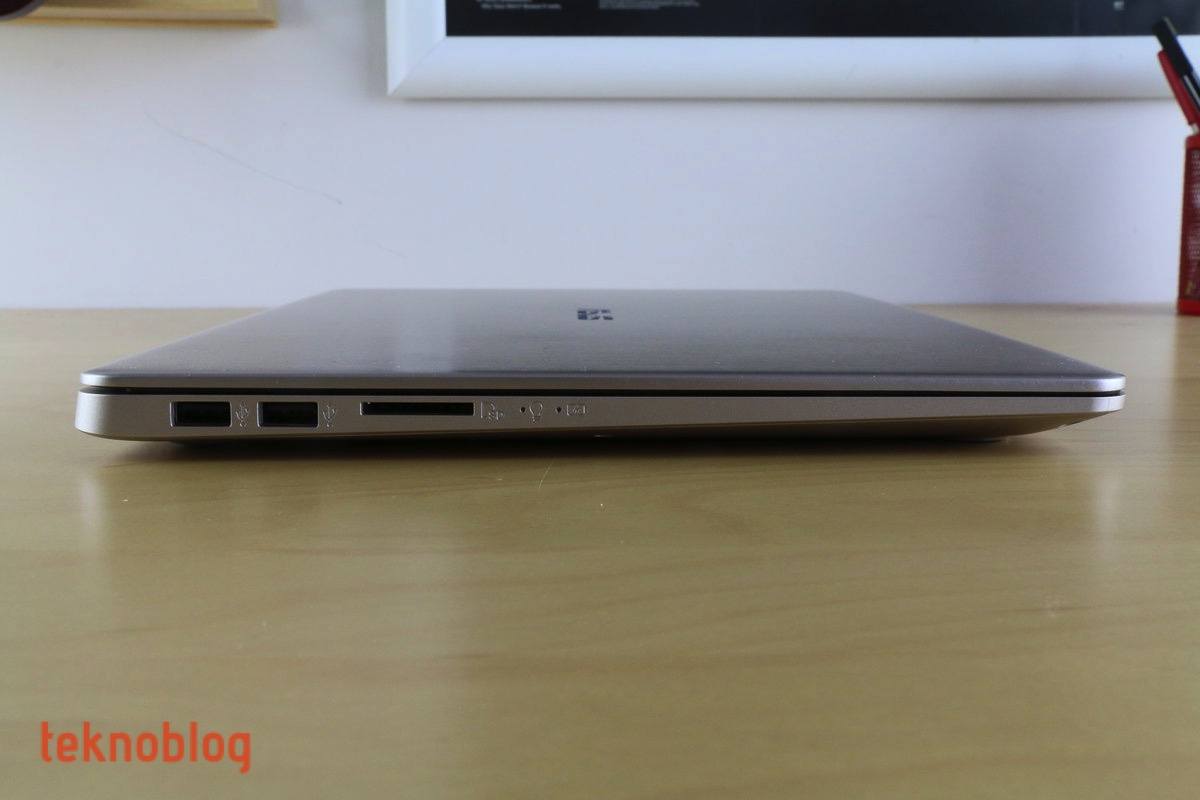 VivoBook S510U’nun kasasının sol kenarında iki adet USB 2.0 girişi ve bir adet standart SD kart girişi bulunuyor. Diğer tarafta ise 3.5 mm. kulaklık jakı, USB-C girişi, tam boy bir HDMI girişi, bir adet USB 3.1 girişi ve şarj girişi yer alıyor. Kısacası VivoBook S510U kullanıcılarına giriş konusunda çok sayıda seçenek sunuyor.