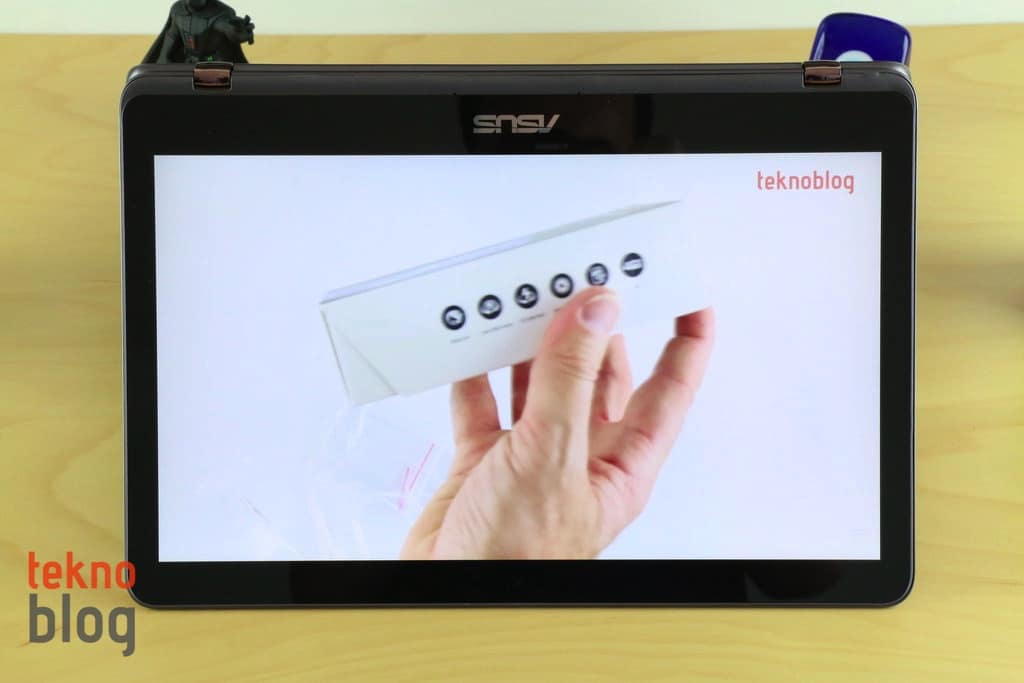 Rakip ürünler gibi Quad HD veya 3K çözünürlüklü olmasa da, ZenBook Flip UX360UA’nın ekranı canlılık konusunda tatmin edici bir iş çıkarıyor. Ekranın görüntüleme açıları için de “muhteşem” sıfatı kullanılabilir. Bazı ekstrem açılarda, az da olsa, gökkuşağı etkisi görülüyor. Ancak bu durum bir sorun teşkil etmiyor.
