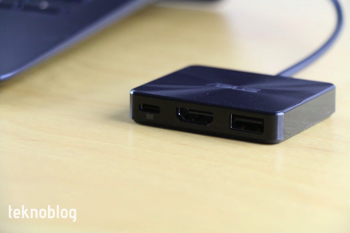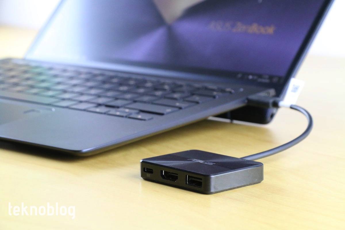 Elinizdeki geleneksel portlara sahip aksesuarları ZenBook S UX391UA’ya bağlamanız için Asus, cihazın kutusuna bir adet adaptör de eklemiş. Bu sayede adaptör için para harcamaktan da kurtarıyor. Adaptörde USB-C, USB-A ve HDMI portları bulunuyor. Bu adaptörü çantanızdan ayırmamanızı tavsiye deriz. Bu arada çanta demişken, ZenBook S’in kutusundan dizüstü bilgisayarın tasarımı ve şıklığıyla uyumlu bir taşıma kılıfı da çıkıyor.