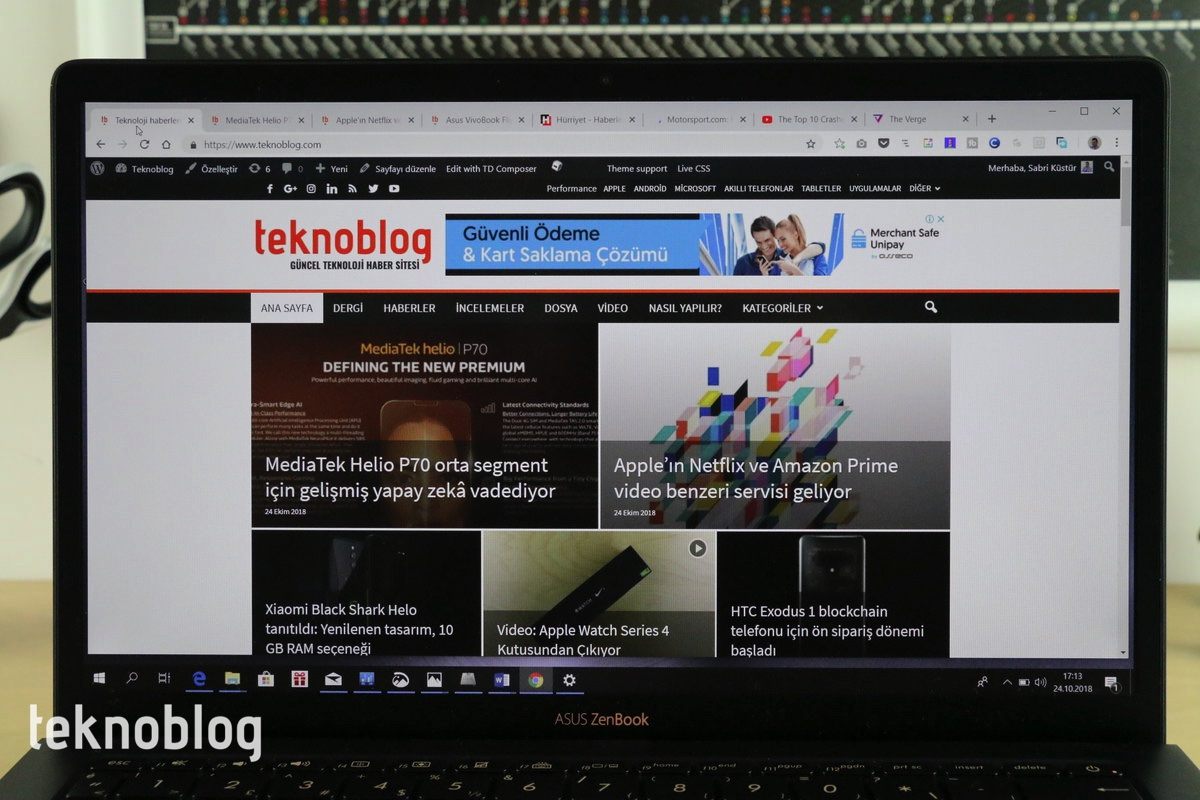ZenBook S’te Intel’in 8. nesil işlemcisi var, ancak Kaby Lake tabanlı. Ancak bu durum hemen yüzünüzün asılmasına neden olmasın. Intel Core i7-8550U işlemci, 16 GB RAM ve 512 GB SSD’li donanım paketiyle UX391UA, yüksek işlemci gücü gerektiren uygulamalar ve yüksek çözünürlüklü videolar için yeterli performansı sunuyor. Google Chrome’da bir sürü sekme açıkken herhangi bir sıkıntı yaşanmıyor. Bunun üstüne bir de YouTube’dan video klip açıp sesini dinlemeyi ve aynı anda Word’den doküman düzenlemeyi ekleyin. Tüm bu yoğun işlerde ZenBook S, görevini iyi şekilde yapıyor.