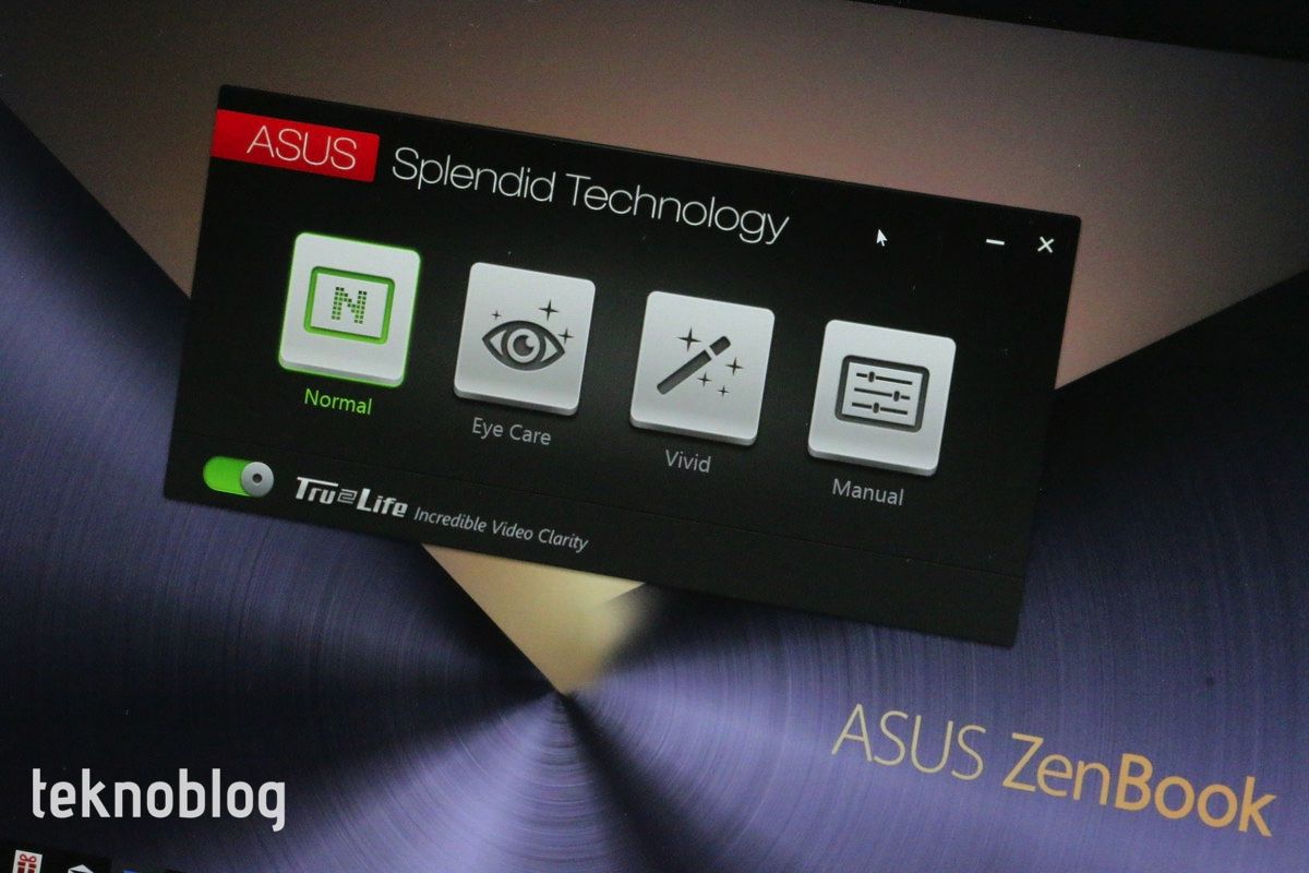 ZenBook S UX391UA’da Windows 10 Home sürümü yüklü olarak geliyor. Asus, kendi adını taşıyan bir klasör altında Asus Hello, Asus Install, Asus Live Update gibi çeşitli uygulamaları sunuyor. Asus Live Update sayesinde en güncel sürücüleri sisteme yükleyebilirsiniz. Bunun dışında yüklü olarak gelen Asus Splendid de ekranın renk sıcaklığını değiştirmenizi sağlıyor. Quiet Fan uygulaması da performansı yazılımla ayarlamaya, böylelikle fanın devreye girmesini mümkün olduğu kadar azaltmaya yarıyor.