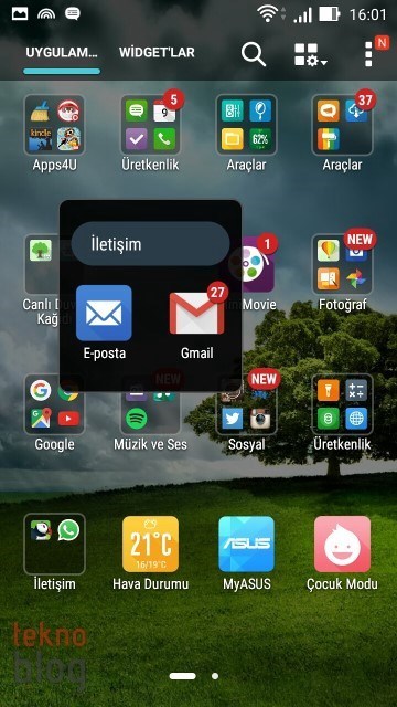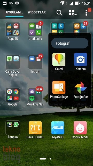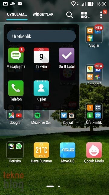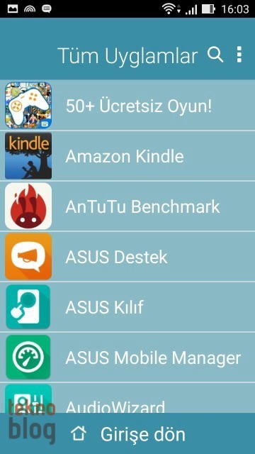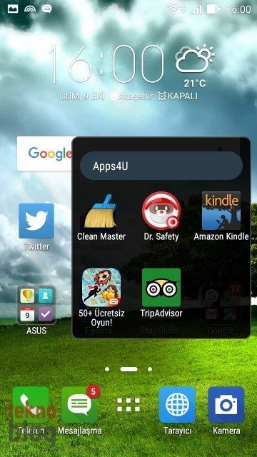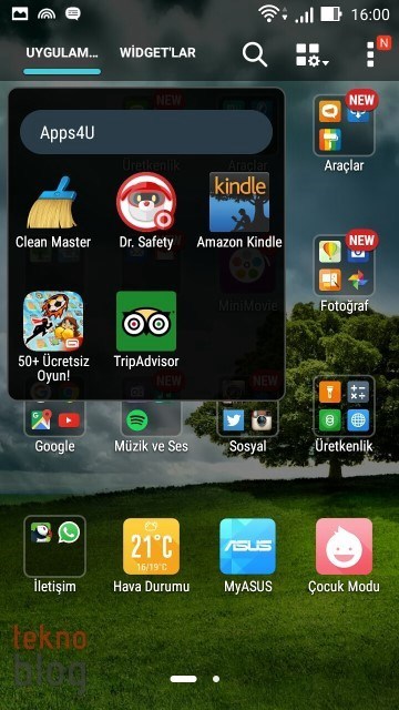 Yine de işe yarar uygulamalar var. Örneğin Asus klasörü altında toplanmış uygulamalar Zenfone 2 Laser’da elinizin en çok gideceği uygulamalar olabilir. Burada Galeri, Kişiler, Takvim, Do It Later (Yapılacaklar Listesi), Dosya Yöneticisi, Saat, Müzik, Hava Durumu, Hesap Makinesi, El Feneri ve Güç Tasarrufu gibi uygulamaların kısayolları bulunuyor. Apps4U klasörü altında belki Clean Master işinize yarayabilir, diğerlerini kaldırabilirsiniz. Bu arada ZenLink klasörü altında toplanan PC Link, Remote Link ve Share Link gibi uygulamalar da başka cihazlarla bağlantı ve içerik paylaşımı noktasında işlerinizi kolaylaştırabilir.