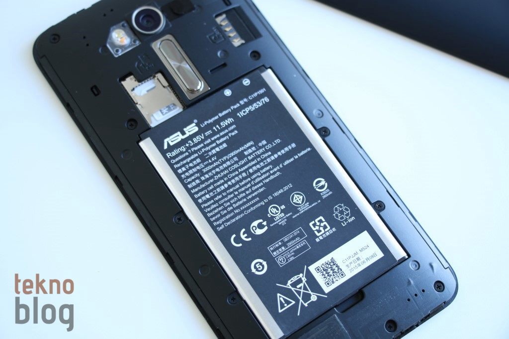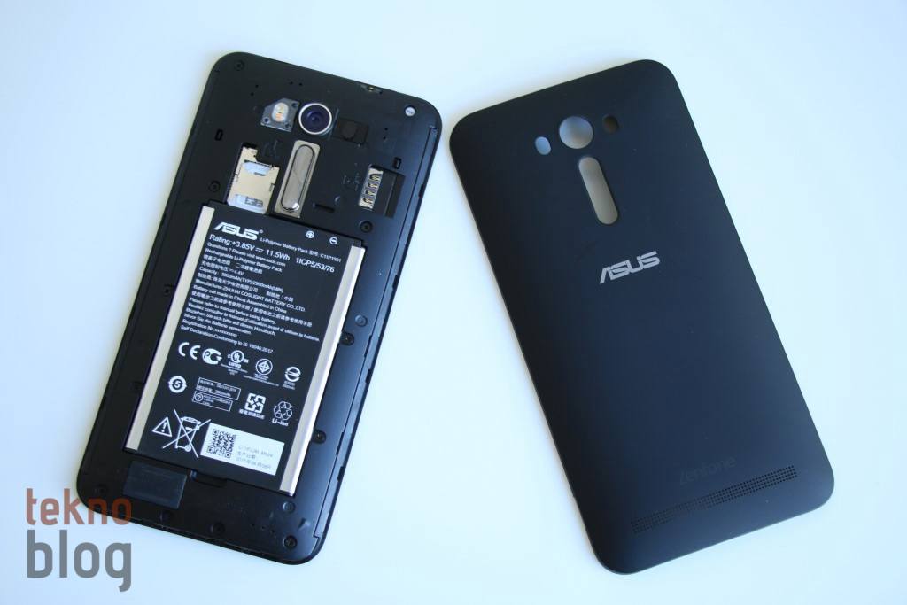 Arka kapağın altında 3000 mAh kapasiteli pil bulunuyor. Zenfone 2’dekinin aksine, Zenfone 2 Laser’ın pili yerinden çıkarılabiliyor. Pili çıkarıp microSIM ve microSD kart yuvalarına erişim sağlanıyor. Bu arada çift SIM kart destekli Zenfone 2 Laser’ın doğal olarak ikinci bir SIM kart yuvası bulunuyor. O yuva pilden ve diğer yuvalardan daha uzakta bir yere konumlandırılmış. İkinci bir SIM kart takmak için pili yerinden çıkarmanıza, dolayısıyla Zenfone 2 Laser’ı yeniden başlatmanıza gerek yok.