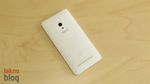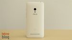 ASUS ZenFone 5’in elimizdeki versiyonunda arka bölümü beyaz plastik kapak örtüyor. Bu kapağın üstünde Asus, Intel ve ZenFone logolarını görüyoruz. 8 megapiksel kamera yatay eksende ortalanmış ve üste doğru konumlanmış. Bunun hemen altında da flaş yer alıyor. Alt kenara doğru da hoparlörün yer aldığını görüyoruz. Arka kapak yerinden rahatlıkla çıkıyor ve sürekli çıkarıp takmalardan sonra bile kapakta oynama olmayacak gibi duruyor. Telefonun 2110 mAh kapasiteli pili görünüyor, ancak gövdeye sabitlenmiş olduğu için kolaylıkla değiştirmek mümkün değil. Pilin hemen üstünde microSIM kart yuvası bulunuyor. ZenFone 5’in çift SIM kartlı versiyonu da bulunuyor, ancak elimizdeki model tek SIM kart desteğine sahip. Üste doğru 64 GB’ye kadar destekli microSD kart yuvası da dikkat çekiyor.