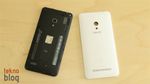 Ekranın altında yer alan kapasitif dokunmatik navigasyon tuşları sayesinde ekranda navigasyon tuşları için alan harcanmıyor. Ekranın üstünde Asus logosu, ahize hoparlörü ve 2 megapiksel ön kamera bulunuyor. Sağ kenarda güç ve ses tuşları alt alta sıralanıyor, bu tuşlar tek elle kullanımda bile rahatlıkla erişilebilecek noktadalar. Altta microUSB portu ve mikrofon bulunuyor. Sol kenarda arka kapağın açılmasına yardımcı olan bir çentik görüyoruz. Üstte de 3.5 mm. kulaklık jakı ve ikinci mikrofon mevcut.
