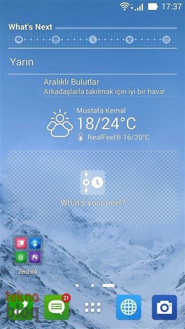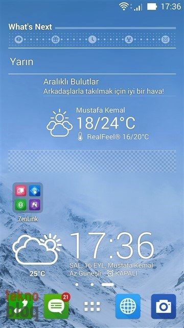 HTC veya LG’nin özelleştirilmiş kullanıcı arayüzünde olduğu gibi Asus’un ZenUI kullanıcı arayüzünde de e-posta, takvim, mesajlar uygulamaları özel renk kodlarına sahip. Bildirim tepsisi ve hızlı ayarlar ise birbirinden ayrılmış. Parmağınızı ekranın sol üst köşesinden aşağı doğru sürüklediğinizde bildirimleri görüyorsunuz. Ancak ekranın sağ yarısında üstten aşağı doğru sürüklediğinizde hızlı ayarlar ekranı karşınıza çıkıyor. Bu, çoğu zaman karıştırılıyor, bildirimlere bakmak isterken hızlı ayarları açtığımız çok oldu.