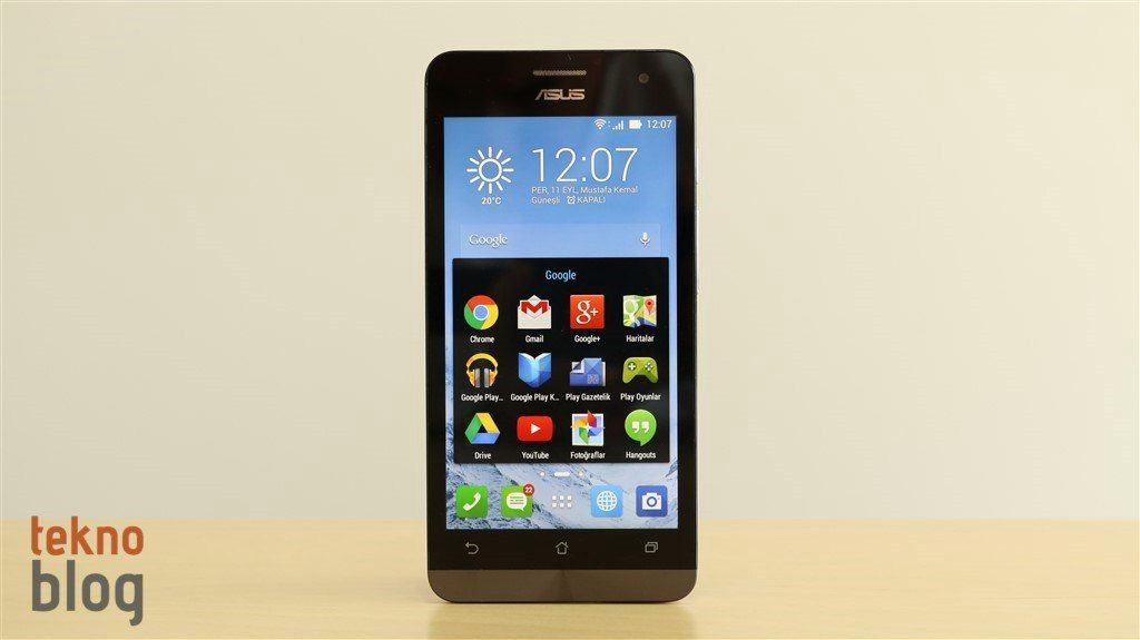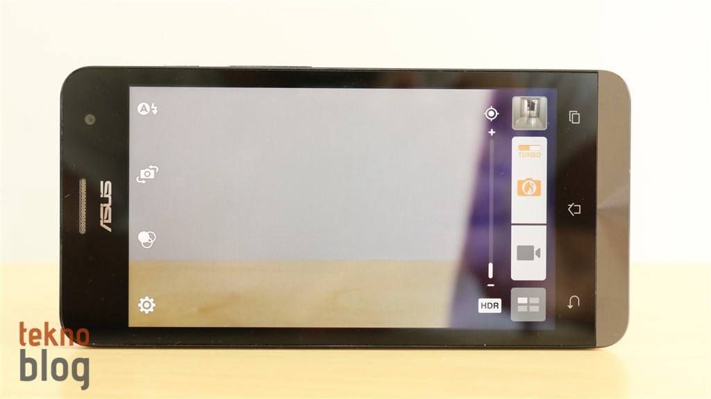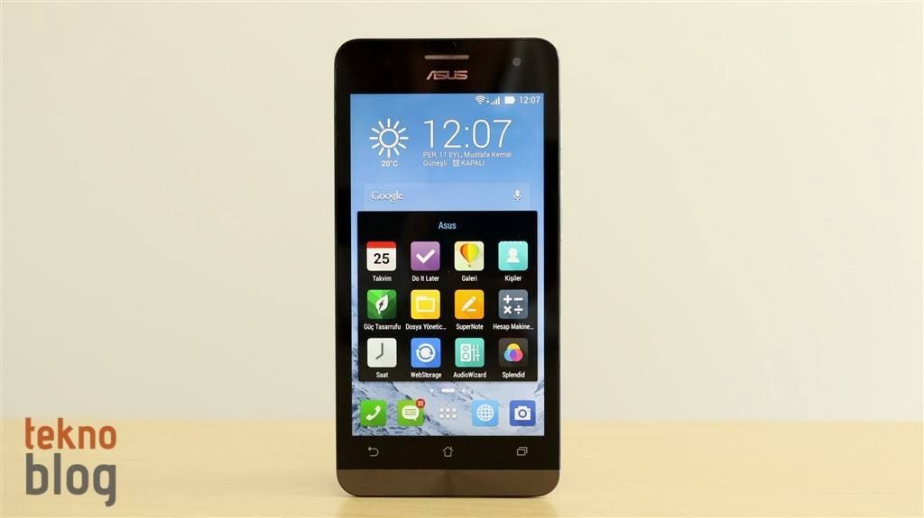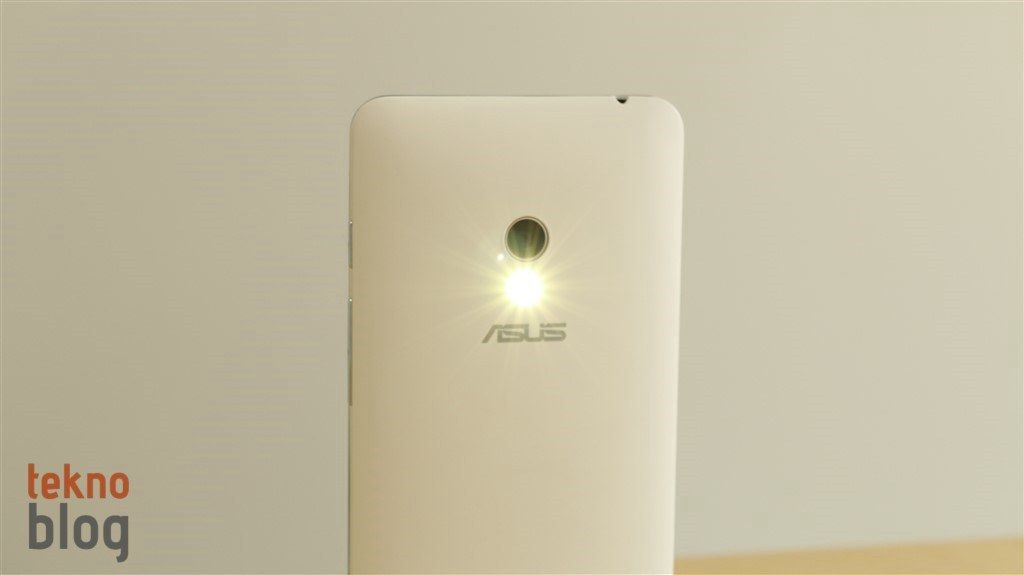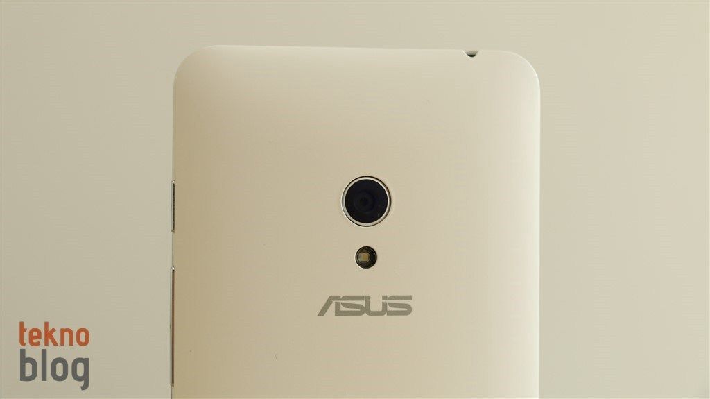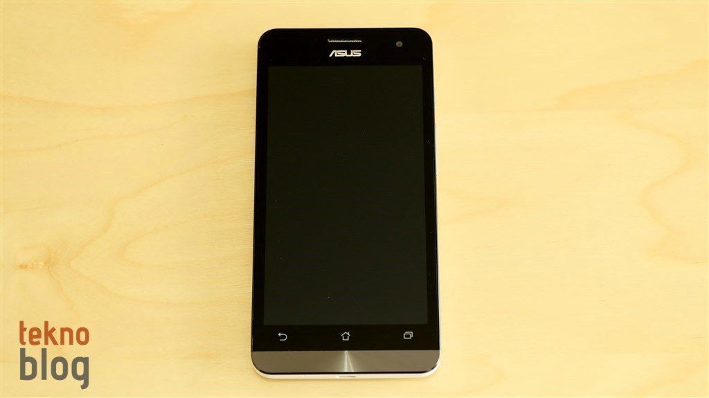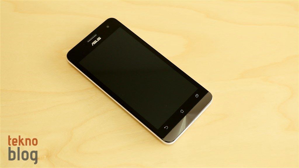 Ekranın altında yer alan kapasitif dokunmatik navigasyon tuşları sayesinde ekranda navigasyon tuşları için alan harcanmıyor. Ekranın üstünde Asus logosu, ahize hoparlörü ve 2 megapiksel ön kamera bulunuyor. Sağ kenarda güç ve ses tuşları alt alta sıralanıyor, bu tuşlar tek elle kullanımda bile rahatlıkla erişilebilecek noktadalar. Altta microUSB portu ve mikrofon bulunuyor. Sol kenarda arka kapağın açılmasına yardımcı olan bir çentik görüyoruz. Üstte de 3.5 mm. kulaklık jakı ve ikinci mikrofon mevcut.