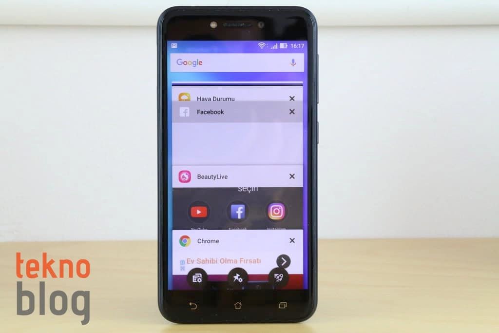 Facebook, Facebook Messenger ve Instagram gibi uygulamalar, cihazda ön yüklü olarak sunuluyor. Bunun sosyal medyayı yoğun biçimde kullananlar için yerinde bir adım olduğu söylenebilir. Neredeyse her Android telefonda yer alan Google uygulamaları, ZenFone Live’da da karşımıza çıkıyor. Ana ekrandaki Google klasörü içinden Gmail, Haritalar, YouTube, Google Drive, Takvim gibi Google uygulamalarına erişilebiliyor. Chrome’un varsayılan tarayıcı olmasının da telefonun güzel yönlerinden biri olduğunu söylemek gerekiyor.
