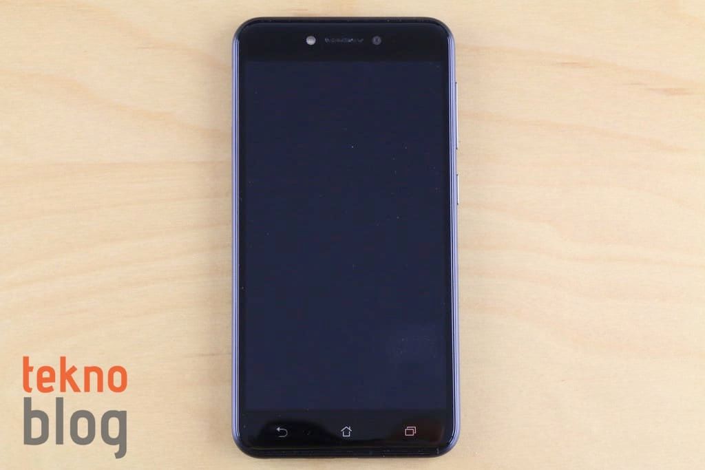 Telefonun ekranını 2.5D kavisli cam kaplıyor. Bu sayede telefon elde tutulurken daha pürüzsüz bir hissiyat sağlıyor. Ekranın alt kısmında kapasitif navigasyon tuşları bulunuyor. Ancak Asus’un bu tuşlar için arkadan aydınlatma yapmaması, özellikle ışığın az olduğu ortamlarda tuşların görülmesini zorlaştırıyor.
