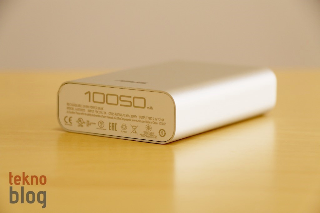 ZenPower 10050’nin boyutlarına baktığımızda küçük, ama biraz hantal durduğunu görüyoruz. 90.5 x 59 x 22 mm.’lik boyutlara ve yaklaşık 250 gr. ağırlığa sahip olan bu ürün biraz ağır, ayrıca kalınlığı da az sayılmaz. Kalın olması nedeniyle cebinize sığdırmanız biraz zor olabilir, ancak nispeten düşük en ve boy değerlerine sahip olmasının yardımıyla çantanızda çok fazla yer tutmayacaktır. Üst ve alt yüzleri dışında ZenPower’ın yüzeyi metalle kaplı. Üst ve alt yüzlerle buluştuğu çizgiler epey keskin, ancak diğer yüzlere geçişlerde hafif kavis verilmiş ve süreklilik sağlanmış. Yüzey metal olduğu için öz ısı doğal olarak düşük, bu da ZenPower’ı çoğu zaman elinize aldığınızda yüzeyin epey soğuk olduğunu hissetmenize yol açacaktır. Metal kullanımı, soğukluk gibi unsurlar ZenPower’ın lüks bir ürün gibi algılanmasını sağlıyor. Bu arada ZenPower’ın metal kaplı yüzeylerinden birine yerleştirilen Asus logosu da oldukça güzel duruyor.