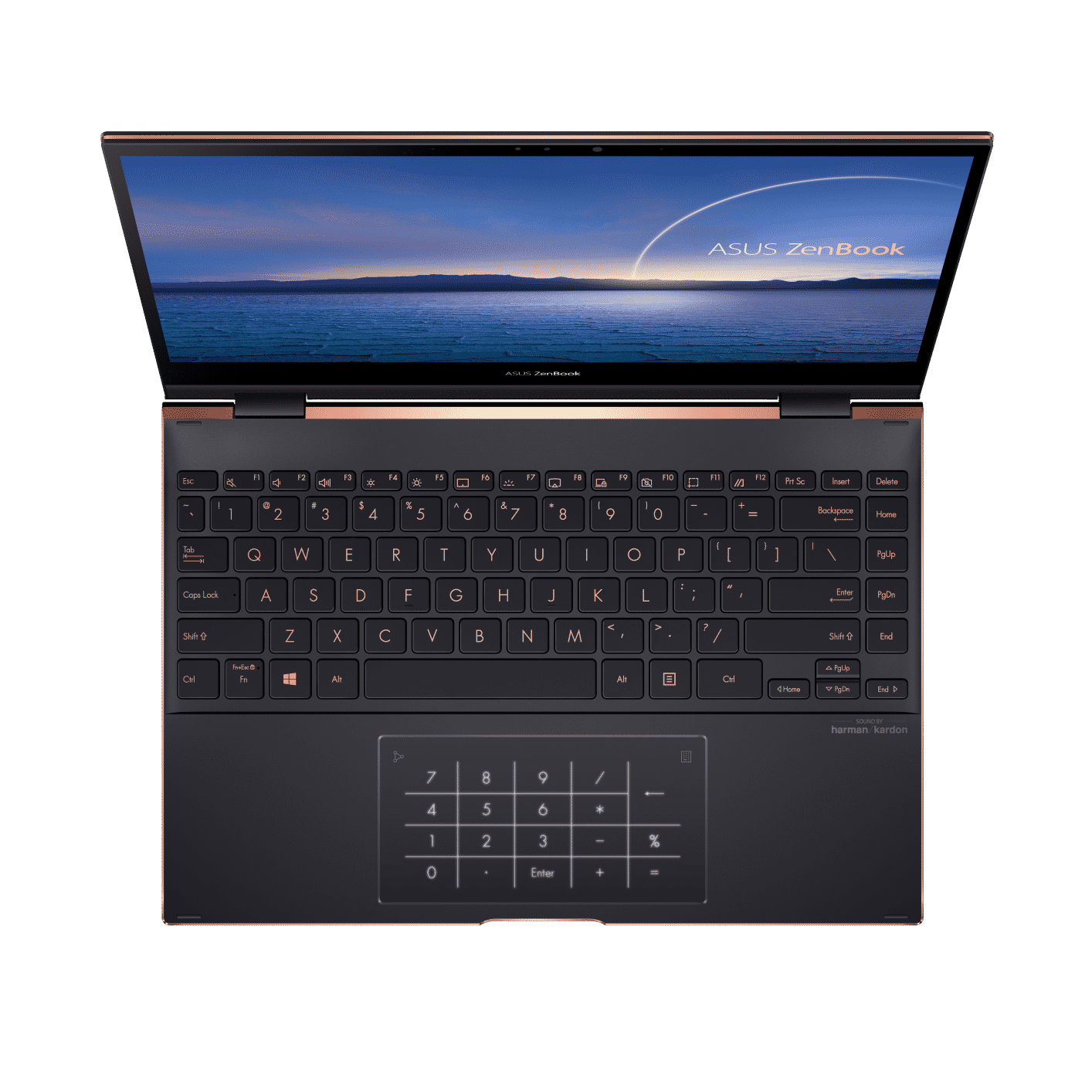 ZenBook Flip S’in, dayanıklı, hassas tasarımlı 360 derece ErgoLift menteşesi, dizüstü bilgisayarın tablet, stand ve çadır modlarında veya bunların arasındaki herhangi bir yerde kullanılmasına olanak tanıyor. ASUS NumberPad 2.0 ise hızlı veri girişi sağlıyor.