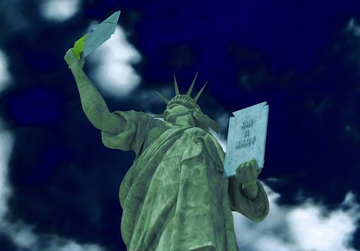 CES 2014’e iki hafta kala yayınlanan videoda Özgürlük Heykeli zafer işareti yaparken görünüyor. Daha sonra bir tablet çıkarıp bunu havaya kaldıran heykel Asus’un gelecek ay Las Vegas’ta tanıtacağı ürünü işaret ediyor.