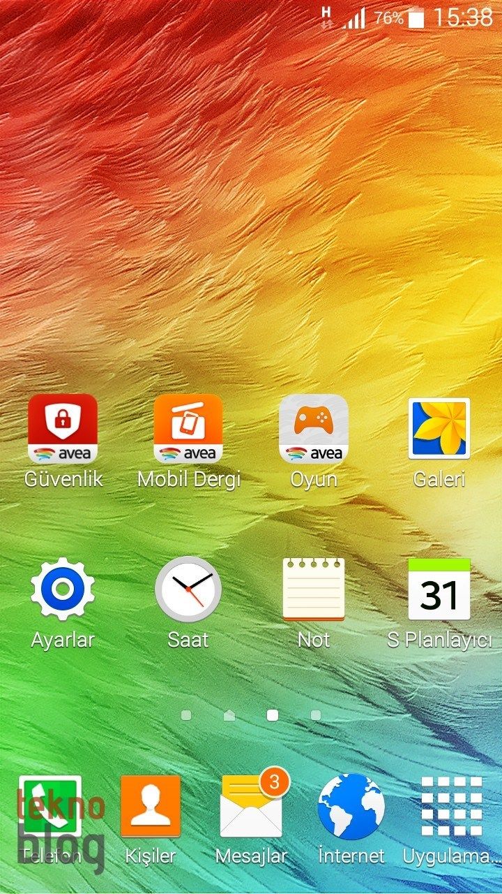 Avea etkisini gördüğümüz bir başka nokta da uygulamalar. Avea’nın Android uygulamaları Galaxy Grand Max sahiplerine ön yüklü olarak sunuluyor. Avea Bulutt, Avea Müzik, Tivibu Cep Avea, Avea Mobil Dergi, Avea Online İşlemler, Avea Yedek, Avea Güvenlik, Avea Oyun ve Avea NBA uygulamalarını, uygulama menüsü içinde bulunan Avea klasörü altında görüyoruz. Ayrıca ana ekrana baktığımızda da bunların bazılarının hızlı erişim amacıyla buralara yerleştirildiğini fark ediyoruz.