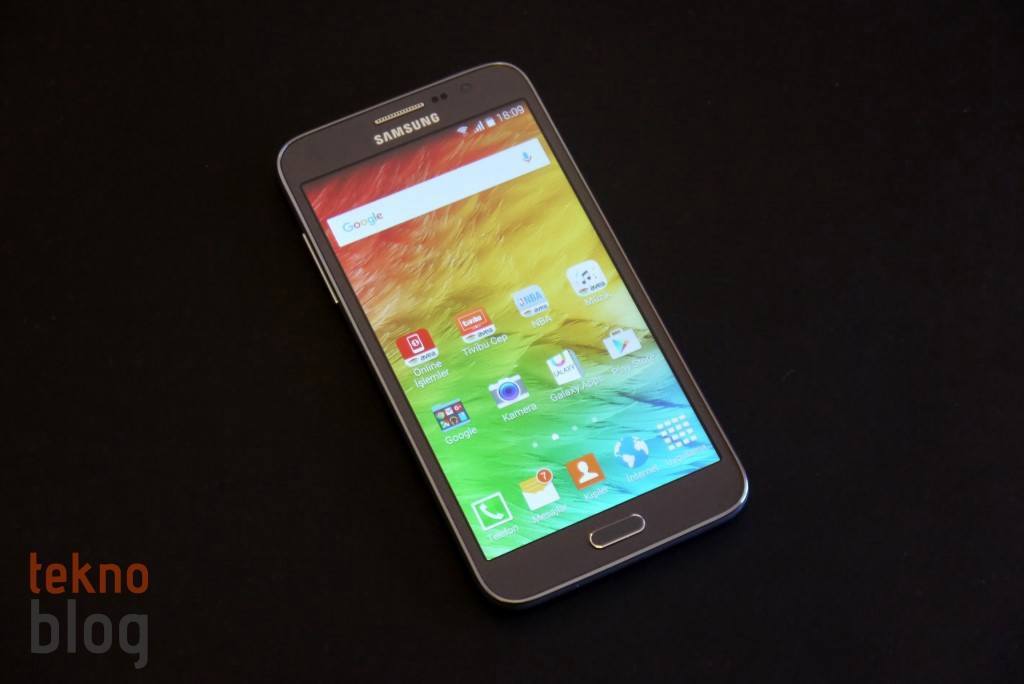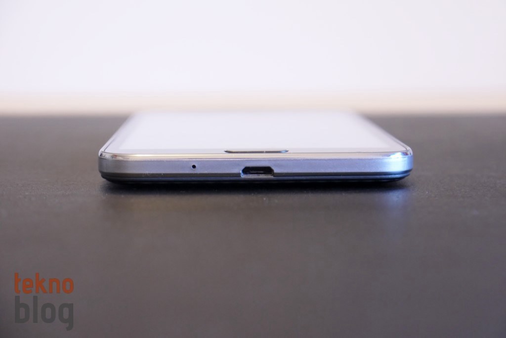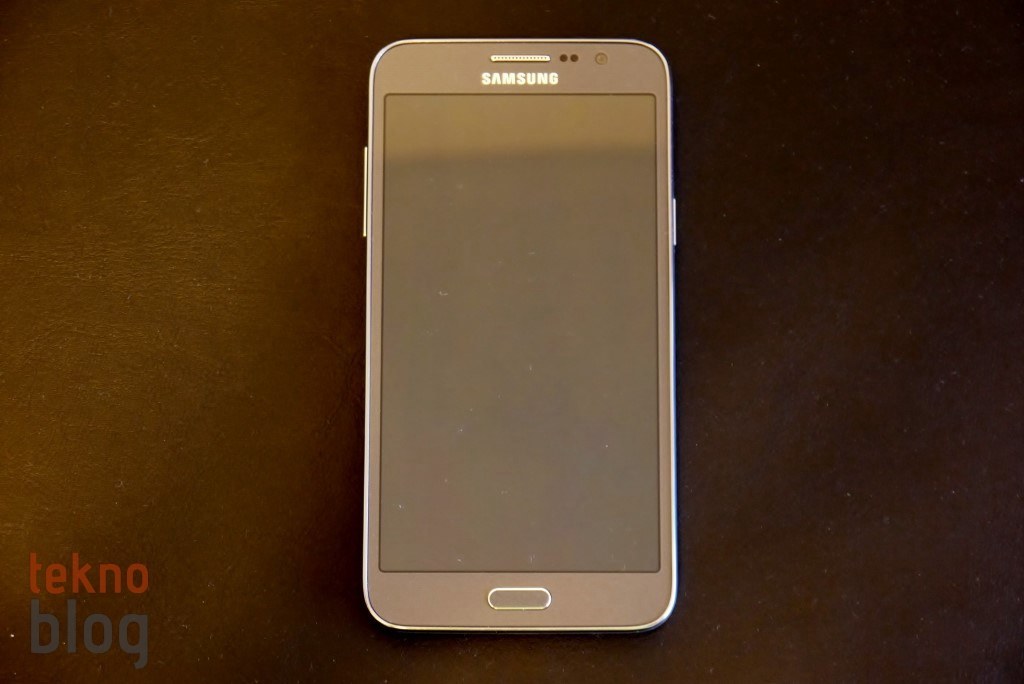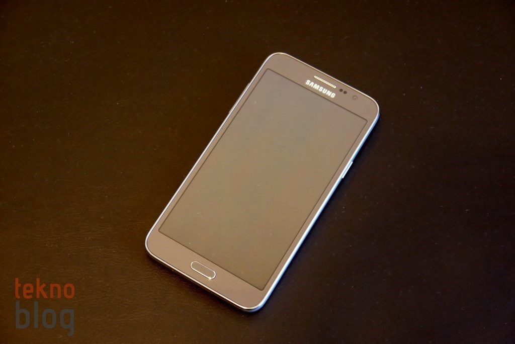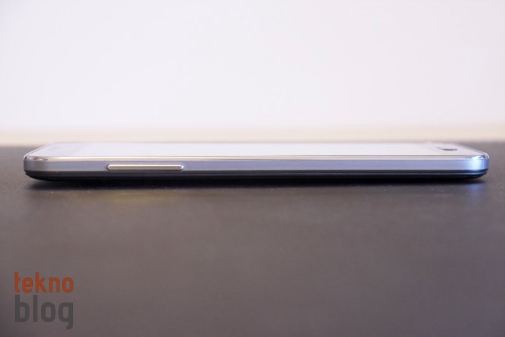 Galaxy Grand Max’in 5.25 inç ekranının altında ana ekran tuşu, onun iki yanında da çoklu görev ve geri işlevleri gören kapasitif dokunmatik navigasyon tuşları bulunuyor. Ekranın üstünde Samsung logosu, ahize hoparlörü, 5 megapiksel ön kamera yer alıyor. Sağ kenarda güç butonu, sol kenarda da ses tuşu her iki elde tutarken ve tek elle kullanırken bile rahatlıkla erişilebilecek noktalarda bulunuyor. Üst kenarda 3.5 mm. kulaklık jakını, alt kenarda da microUSB portu ve mikrofonu görüyoruz.