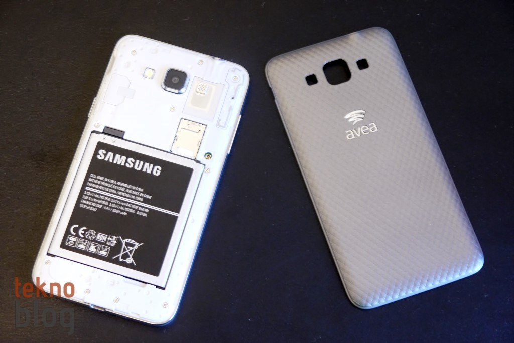 Avea Galaxy Grand Max’in bir Avea telefonu olduğunu gösteren en önemli simge arkada, kamera altında yer alan Avea logosu. Samsung markalı versiyonunda burada Samsung logosunu görüyoruz, ancak Avea Galaxy Grand Max’te Samsung logosu yerine Avea logosu yer alıyor. Neredeyse pürüzsüz yüzeyli, yumuşak ve dokulu arka yüzey üzerine yerleştirilmiş hafif yansıtmalı Avea logosu bu telefonu zarif ve çekici gösteriyor.