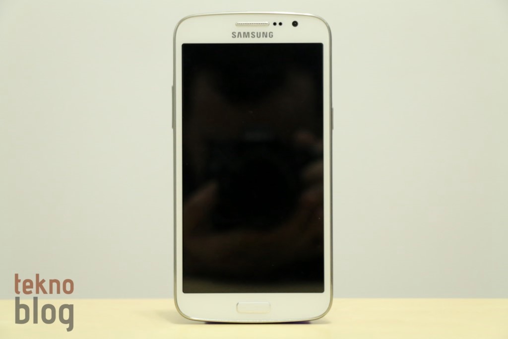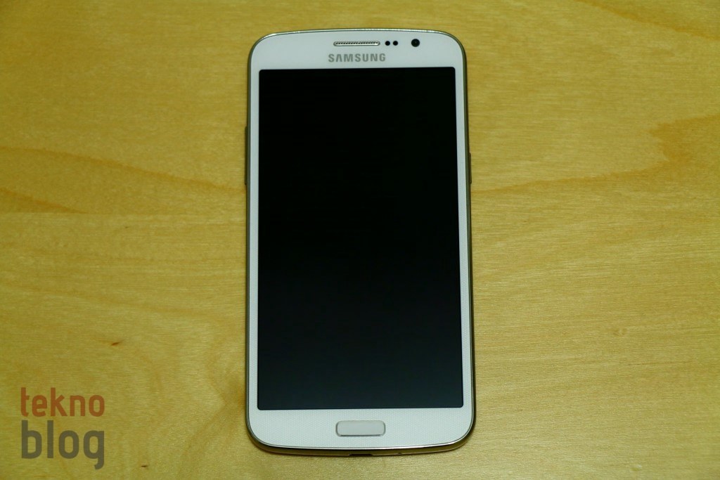 Galaxy Grand 2 LTE’nin 5.25 inç ekranını çevreleyen çerçevenin alanı çok küçük değil, ancak çok da büyük olduğunu söyleyemeyiz. Uzun kenarları saran çerçeve alanının büyüklüğü iyi ayarlanmış, böylelikle telefon tek elle kavrandığında eli fazla yormuyor, büyüklük hissi vermiyor. Ekranın altında yer alan bölüme ana ekran tuşu, onun her iki yanına da kapasitif dokunmatik navigasyon tuşları yerleştirilmiş. Ekranın üstünde ise Samsung logosu, 1.9 megapiksel ön kamera, sensörler yer alıyor.