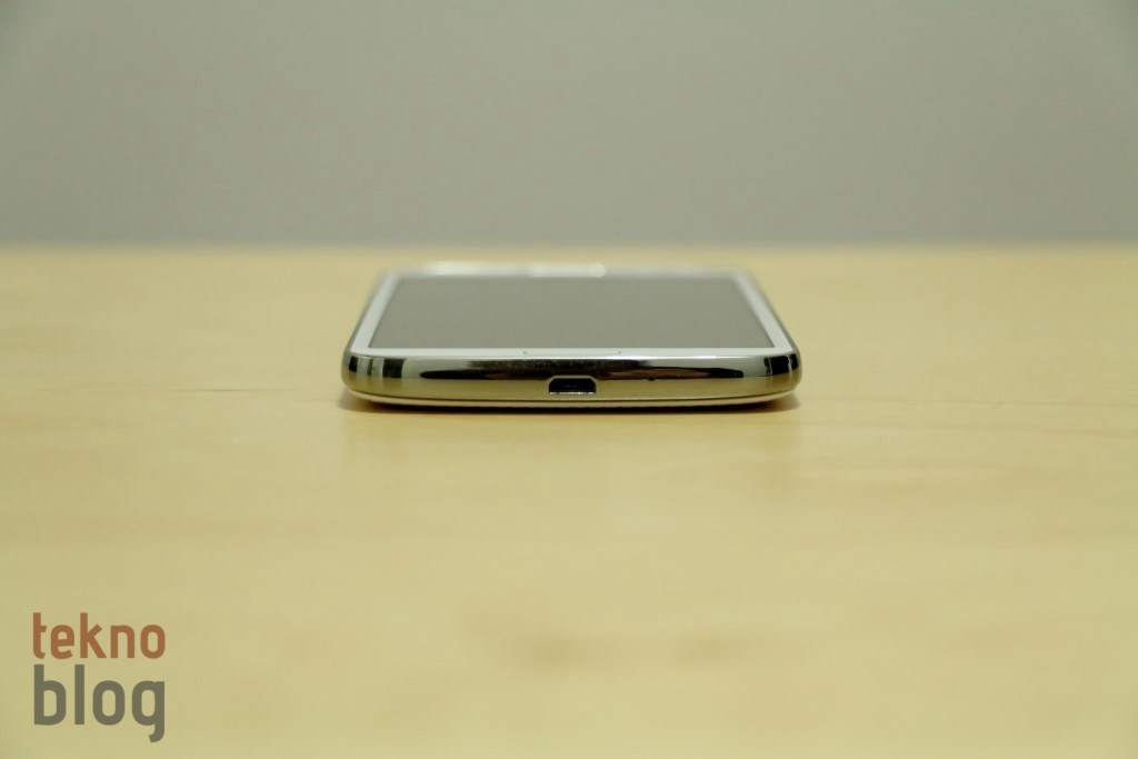 Grand 2 LTE’nin kenarları metal görünümlü çerçeveyle çevrilmiş. Bu yapıyı Galaxy S5, Galaxy Note 3 gibi akıllı telefonlardan biliyoruz. Telefonun sağ kenarında güç butonu ve arka kapağı açmaya olanak sağlayan bir çentik bulunuyor. Sol kenarda ise ses tuşları konumlandırılmış. Tuşların yerleşimi diğer Samsung Galaxy telefonlarından farklı değil ve telefonu her iki elinizde de tuttuğunuzda telefonu elinizde oynatma zahmetine girmeden bu tuşlara rahatlıkla erişebiliyorsunuz. Alt kenarda microUSB portu ve mikrofon bulunurken üst kenarda da 3.5 mm. kulaklık jakını görüyoruz.