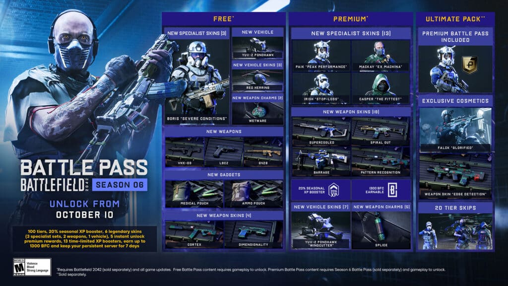 Güçlü silahlar ve kullanışlı cihazlar içeren yeni Battle Pass seviyeleri, oyunculara avantaj kazandıracak, yeni sezonun kozmetik ürünleri ise düşmanlarınıza daha korkutucu görünmenizi sağlayacak. Tüm bu içeriğe ek olarak 6. sezonda oynanış kalitesine yönelik birçok güncelleme de geliyor.
