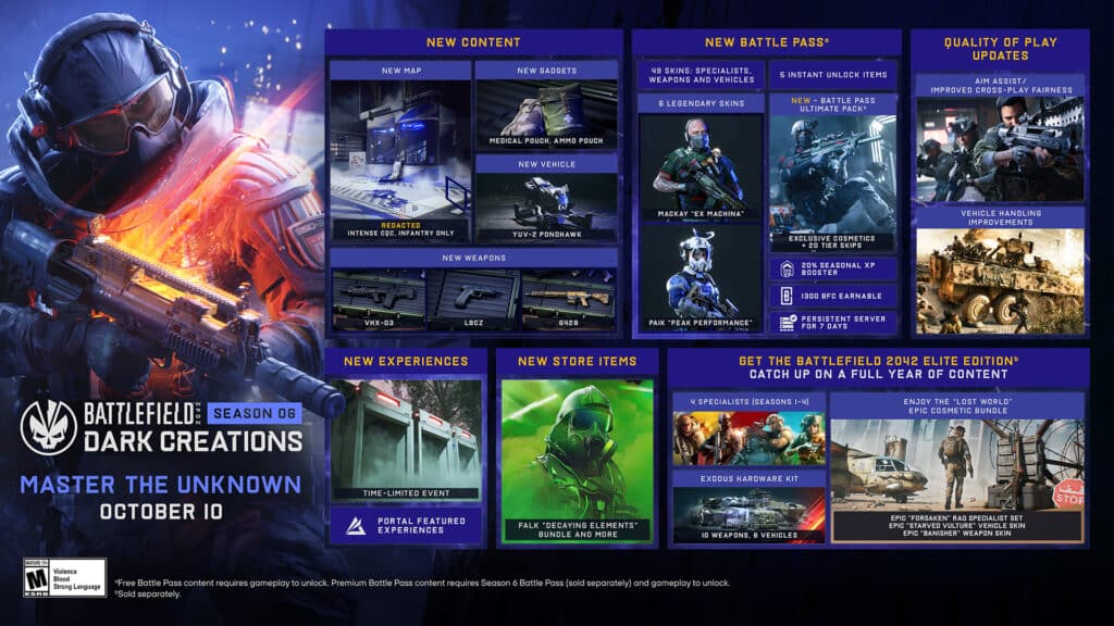 Battlefield 2042 6. Sezon: Dark Creations’ı deneyimlemek isteyenler, 12-16 Ekim tarihleri arasında Battlefield 2042’nin tüm platformlarda ücretsiz olarak yayınlanması sayesinde bu isteklerini daha kolay şekilde gerçekleştirebilecek.