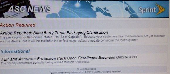 Söz konusu işlevin varlığı ABD’de faaliyet gösteren Sprint adlı mobil operatöre gönderilen bir not sayesinde açığa çıktı. Önümüzdeki aylarda yayınlanacak bir güvenlik güncellemesiyle birlikte WiFi kişisel erişim noktası özelliği BlackBerry 7 OS’e kazandırılacak. İnternete sızan notta mobil operatörün çalışanlarına müşterileri pakette yer alacak kişisel erişim noktası özelliği konusunda eğitmeleri tavsiye ediliyor. Şu anda mevcut olmayan bu özellik son çeyrekte yayınlanacak ilk büyük yazılım güncellemesiyle birlikte kullanıma sunulacak. Söz konusu özelliğin kullanımında son karar tabii ki mobil operatörlere bağlı olacaktır.