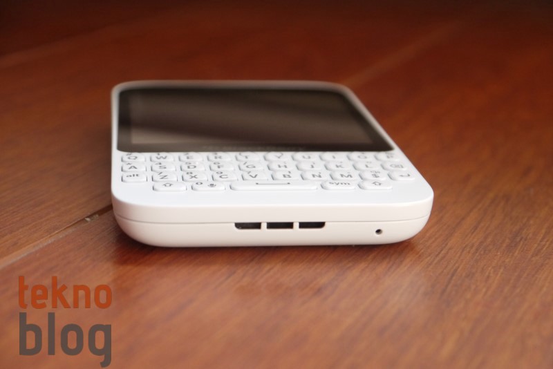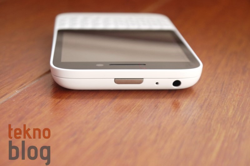 BlackBerry Q5’in üst kenarında açma kapama tuşu ortada yer alıyor. Dışa doğru fazla çıkıntı yapmayan tuş, fazla derin bir yapıya sahip değil. Bu nedenle de kullanım sırasında biraz zorlanılabilir. Mikrofon ve 3.5 mm. kulaklık jakı da bu tuşun yanına yerleştirilmiş. Telefonun sağ kenarındaysa ses kademe tuşları ve bunların ortasında sesli kontrol tuşu bulunuyor. Altta hoparlör ve mikrofon yer alırken, sağ kenarda da microUSB portu ile bir kapak arkasına gizlenen microSD ve microSIM kart yuvaları görülüyor.