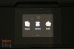 Siyah, beyaz ve bunlara ek olarak yanık turuncu gibi sıra dışı bir renge sahip olan Canon PIXMA MG7550 birkaç yılın öncesine ait PIXMA her şey dahil çözümlerinin vernik boyalı kutu tasarımını temel alarak geliştirilmiş. Eğimli ön panel daha önceki modellerde üst bölümü tamamen kaplayan tarayıcı kapağının bir kısmını işgal ediyor, ancak 8.8 cm’lik dokunmatik ekran ve birkaç tane özel buton için yeterli alanın var olmasına imkan tanıyor. Dokunmatik ekranın sağına ve soluna yerleştirilmiş olan kapasitif dokunmatik butonlar aydınlatma özelliğine de sahip.