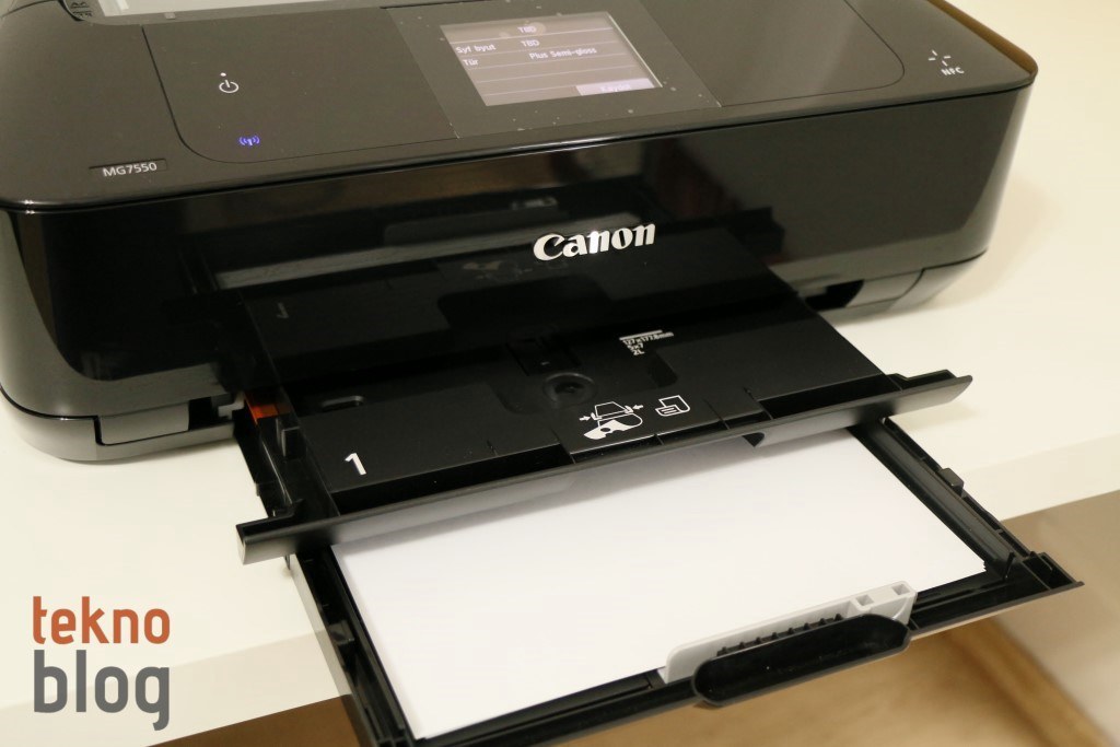 Canon PIXMA MG7550’nin altı adet kartuş yuvası bulunuyor. Yerleştirilmesi gereken kartuşların arasında fotoğraf siyahı ve fotoğraf grisi de yer alıyor.