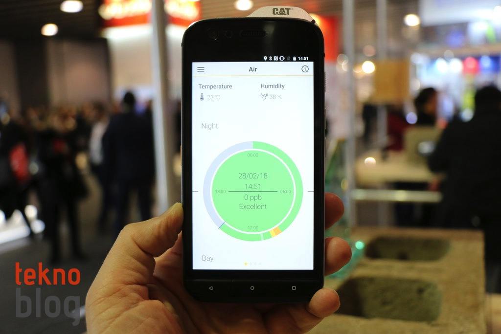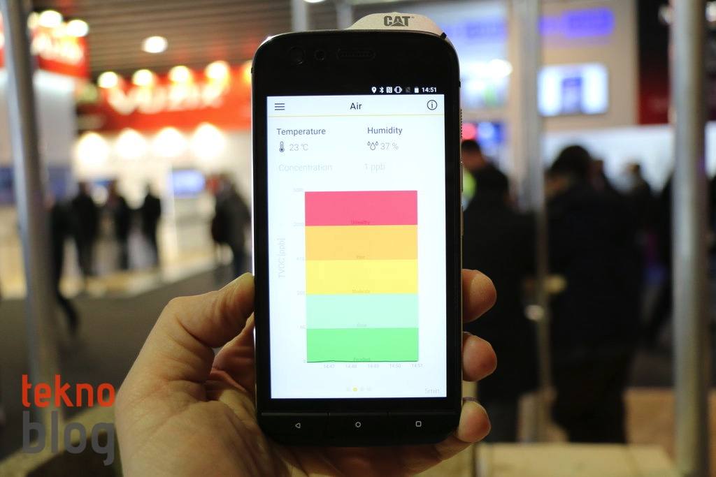 Öte yandan sağ kenarda, ses tuşlarının altında da ortam hava kalite sensörü bulunuyor. Sensör ölçümleri telefonda yüklü gelen Air uygulaması yardımıyla görüntülenebiliyor. Bu uygulama grafiklerle, gayet açık biçimde, geçmiş bilgilerini de tutarak ortamın hava kalite kaydını görmeyi sağlıyor.