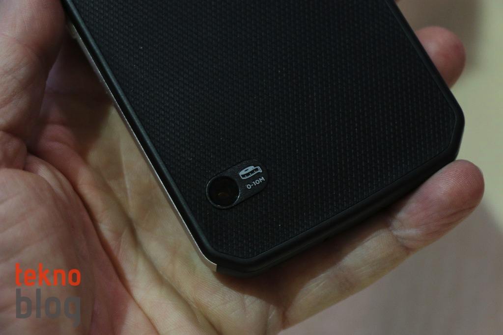 Cat S61’in tasarımı genel olarak selefiyle aynı gibi görünse de, detaylara bakıldığında çeşitli farklılıklar gösteriliyor. Örneğin arka yüzey daha da sadeleştirilmiş, ana kamera ve termal kameranın bulunduğu bölümdeki fazlalıklar atılmış. Öte yandan alt kenara doğru da, 0 ile 10 metre arasında mesafe ölçmeye olanak sağlayan lazer birimi eklenmiş. Ona birazdan geleceğiz.