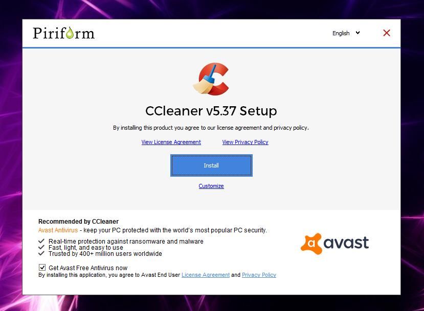 Güvenlik yazılımları satıcısı Avast bu yılın başlarında Piriform’u satın almıştı. Şirketin mevcut ürünlerini yeni satın alınan çözümlerle paket hâlinde sunması veya aralarında ortak çalışma zemini yaratması bekleniyordu. Ve beklenen nihayet oldu. Güvenli temizleme uygulaması CCleaner, Avast Free Antivirus yazılımını yükleyicisi üzerinden paket olarak sunmaya başladı.
