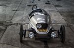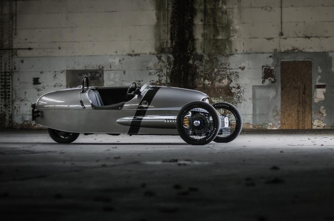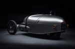 Morgan EV3 geçmişten fırlayıp gelmiş, ince tekerlekli ve yuvarlak hatlara sahip olan bir otomobil. Bronz görünümlü radyatörü, lastik sayısıyla eşleşecek şekilde üç adet farı bulunuyor.