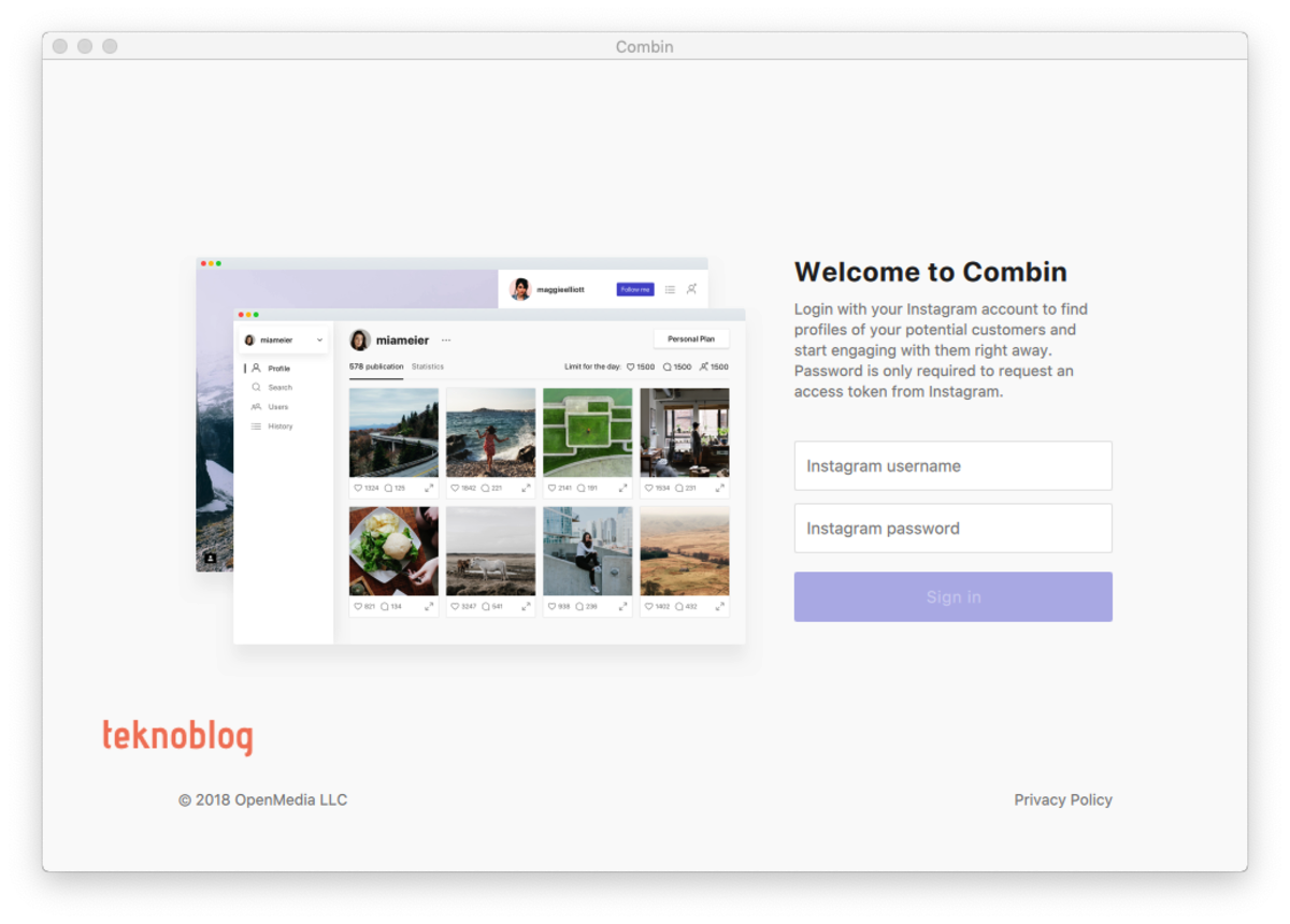 Combin, Instagram odaklı bir pazarlama uygulaması. Uygulama kendisini Instagram hesabınızı güvenli ve organik biçimde yönetmeye ve büyütmeye yardımcı olan bir uygulama olarak tanımlıyor.