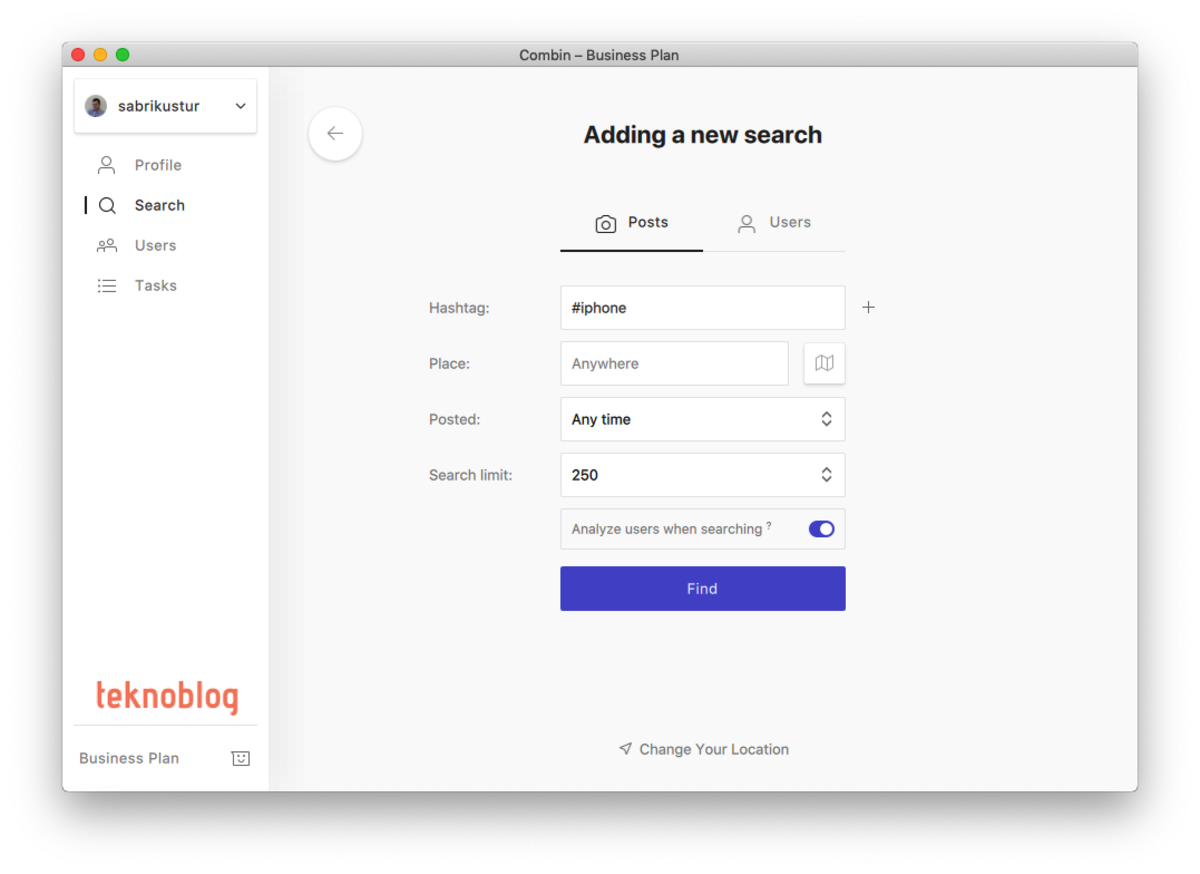 Combin uygulamasının temel olarak altı farklı özelliği bulunuyor. Bunlardan ilgi Gelişmiş Arama. Bu sayede Instagram içeriği içinde konu etiketi, konum veya her ikisine birden dayanarak arama yapabilirsiniz. Eğer belirli bir ilgi alanına sahip olan ve belirli bir konumda yaşayan Instagram kullanıcıları hedefinizdeyse, bu özellik epey işinize yarayacaktır.