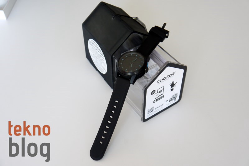 Cookoo Watch’un tam siyah ve tam beyaz renklerinin yanı sıra mavi-siyah ve pembe-siyah renkli bir versiyonları da bulunuyor. Ayrıca tam siyah renkli versiyonda saat camının etrafını yeşil ve gümüş renkli çerçevelerin sardığı iki farklı seçenek daha bulunuyor. Test merkezimize gönderilen tam siyah renkli versiyonda saatin akrep ve yelkovanı, ayrıca saatleri gösteren çizgiler mavi renk taşıyor.