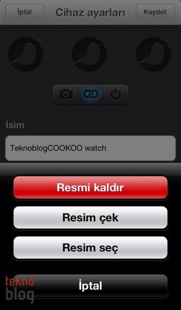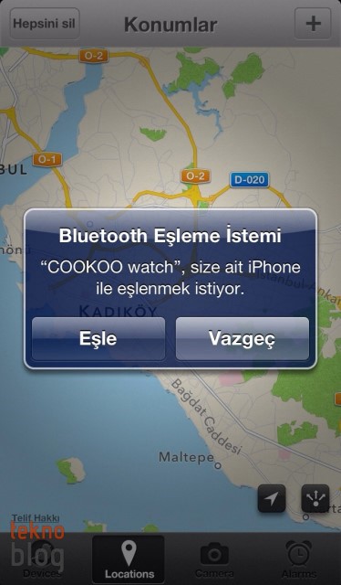 App Store’dan ücretsiz olarak indirilen Cookoo iOS uygulaması sayesinde saat ve iPhone arasında etkileşim sağlanıyor. Bluetooth 4.0 destekli Cookoo Watch’u iPhone ile eşleştirmek için Connect tuşuna altı saniye boyunca basmak gerekiyor. Bunun sonrasında saatin ekranındaki tüm ikonlar aynı anda yanıp sönmeye başlıyor. Aynı esnada iPhone’da yüklü olan Cookoo uygulamasını açtığınızda saatinizin Cihazlar bölümü altında görüntülendiğini farkedeceksiniz. Tabii, bu noktada iPhone’da Bluetooth bağlantısının etkin olduğunu belirtmemiz gerekiyor.