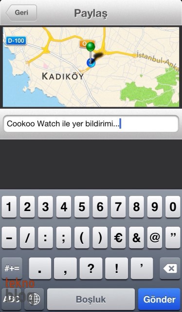 COMMAND tuşu genellikle konum bildirimi veya saati bulmaya yarıyor. Ayarlar bölümü altından COMMAND tuşuna ne kadar süreyle basılı tutulacağına göre hangi işlevin gerçekleştirileceğini belirlemek mümkün kılınmış. COMMAND tuşuna kısa (0-2 sn.), orta (2-4 sn.) ve uzun (4+ sn.) süreli basarak yer işaretlemesi yapabilir, iPhone’un yerini bulabilir veya Facebook üzerinde yer bildirimi işlemini gerçekleştirebilirsiniz. Yaptığınız tüm yer işaretlemelerinin Cookoo uygulaması içinde Yer Bildirimi bölümü altında kaydedildiğini belirtelim. Tabii ki, bunları dilediğiniz zaman silmeniz mümkün kılınıyor.