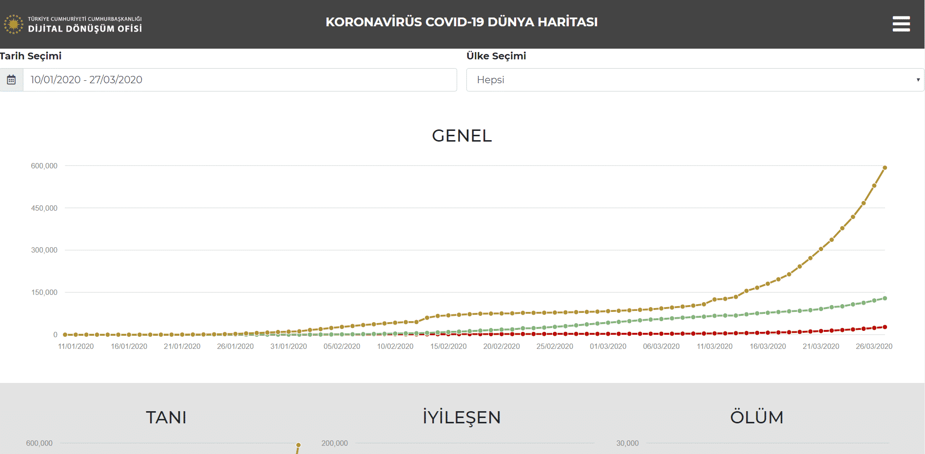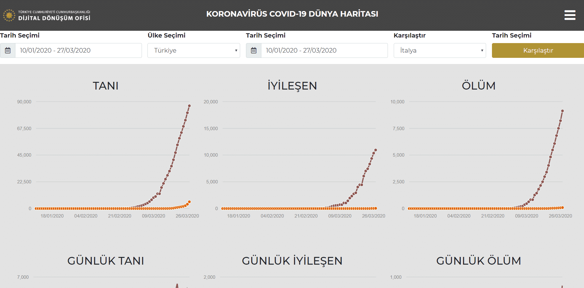 Sade ve anlaşılır tasarımı ve grafiklerle bilgi çekebilme imkanıyla Cumhurbaşkanlığı Dijital Dönüşüm Ofisi tarafından hazırlanan site, koronavirüs ile ilgili bilgi elde etmek isteyenler için yararlı bir kaynak olacaktır.