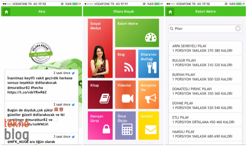 Blog bölümünden Dilara Koçak’ın kaleme aldığı ve kişisel blogu üzerinden yayınladığı yazılara hızlı biçimde erişilebiliyor. Dilara’nın Mutfağı bölümünde ise uzman diyetisyenin sağlıklı tarifleri için gerekli malzemeler ve tariflerin uygulanışına dair bilgiler yer alıyor. Kullanıcılar bu tariflere dair detayları ise videolar bölümünde bulabiliyor. Videolar bölümünde Koçak’ın tariflerini uyguladığı videolara erişilebiliyor. Bu bölüm, uzman diyetisyen Koçak’ın YouTube kanalına erişim için kısa yol işlevi görüyor.