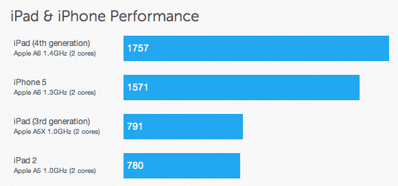 Apple, iPad mini ile birlikte dördüncü nesil iPad’i de cuma günü satışa sundu. Lightning konnektörü, A6X işlemcisi ve daha iyi Face Time kamerası ile dikkat çeken cihaz Apple tarafından hızı ile ön plana çıkarılmıştı. Dördüncü nesil iPad’in benchmark sonuçları da dördüncü nesil iPad’in selefine göre iki kat daha hızlı olduğunu ortaya koyuyor.