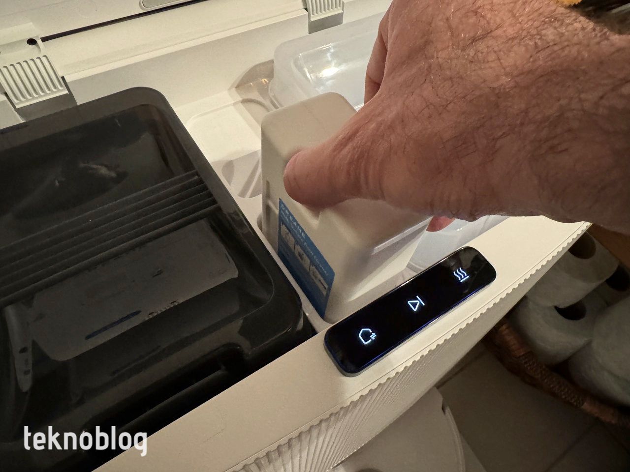 Cihazın üst kısmında, navigasyon için hayati öneme sahip LIDAR tarayıcı ve bazı temel işlevleri yerine getiren üç adet kontrol düğmesi bulunuyor. Bu düğmeler, temel ihtiyaçlar için yeterli olsa da, cihazın tüm özelliklerinden faydalanmak için mobil uygulamanın kullanılması öneriliyor. Temizlik sırasında ön kısmındaki iki parlak ışık, LIDAR’ın karanlıkta bile etkili olmasını sağlayarak, aydınlık bir ortam olmadan da harika bir temizlik performansı sunuyor.